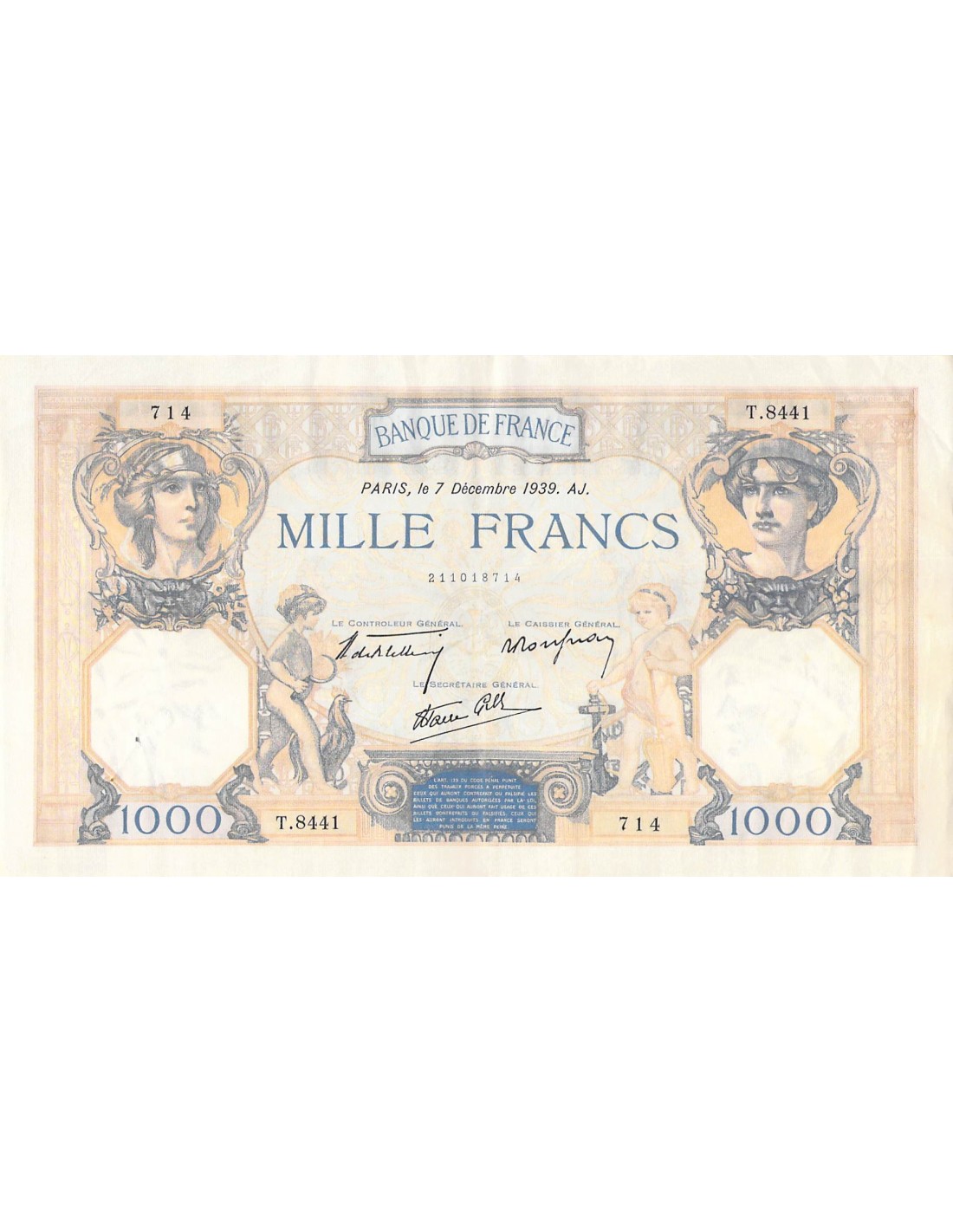 FRANCE, CÉRÈS ET MERCURE - 1000 FRANCS 07/12/1939 - SÉRIE T.8441