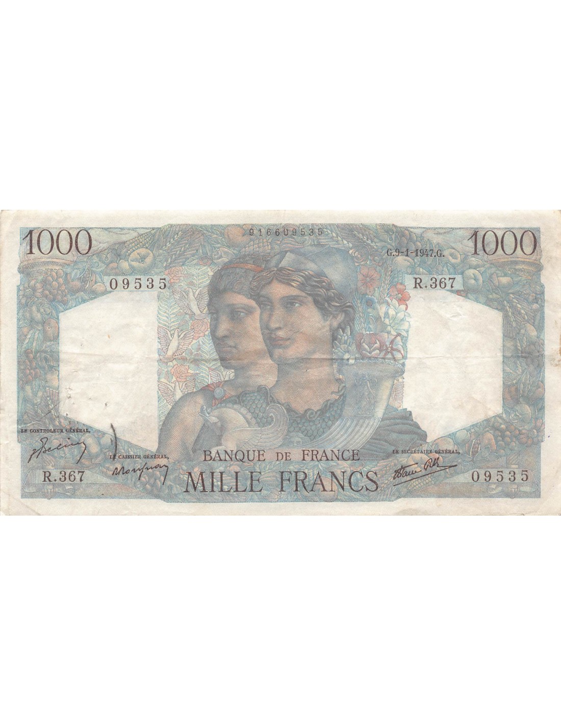 FRANCE, MINERVE ET HERCULE - 1000 FRANCS 09/01/1947 - SERIE R.367 - PTTB