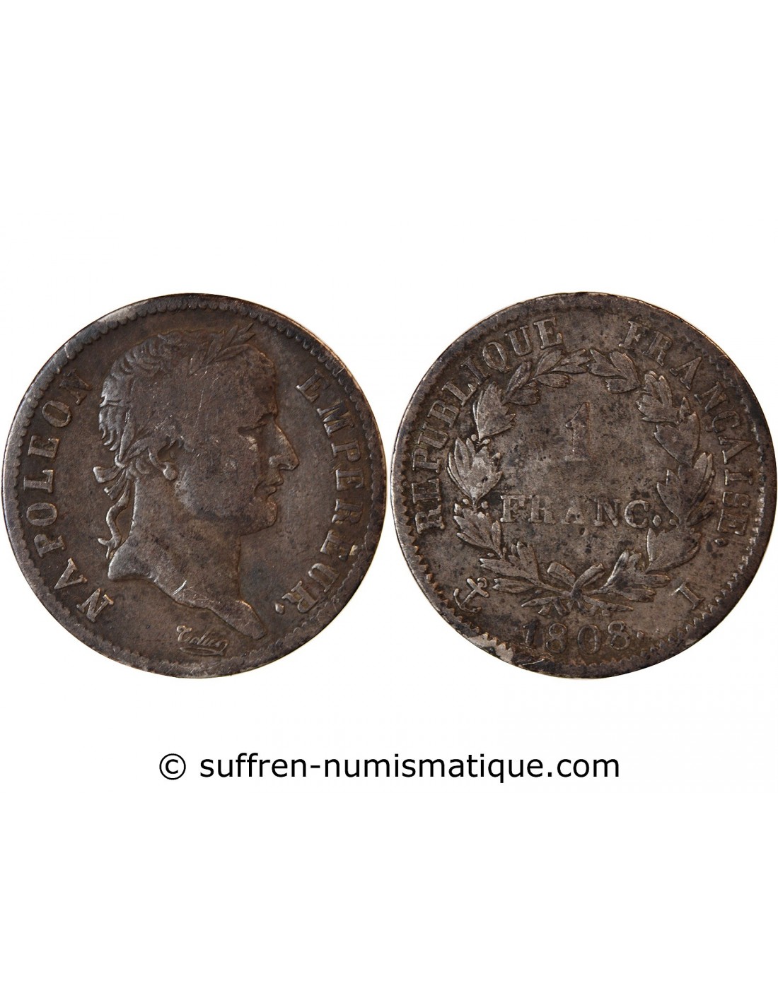 NAPOLEON Ier - 1 FRANC ARGENT 1808 T NANTES