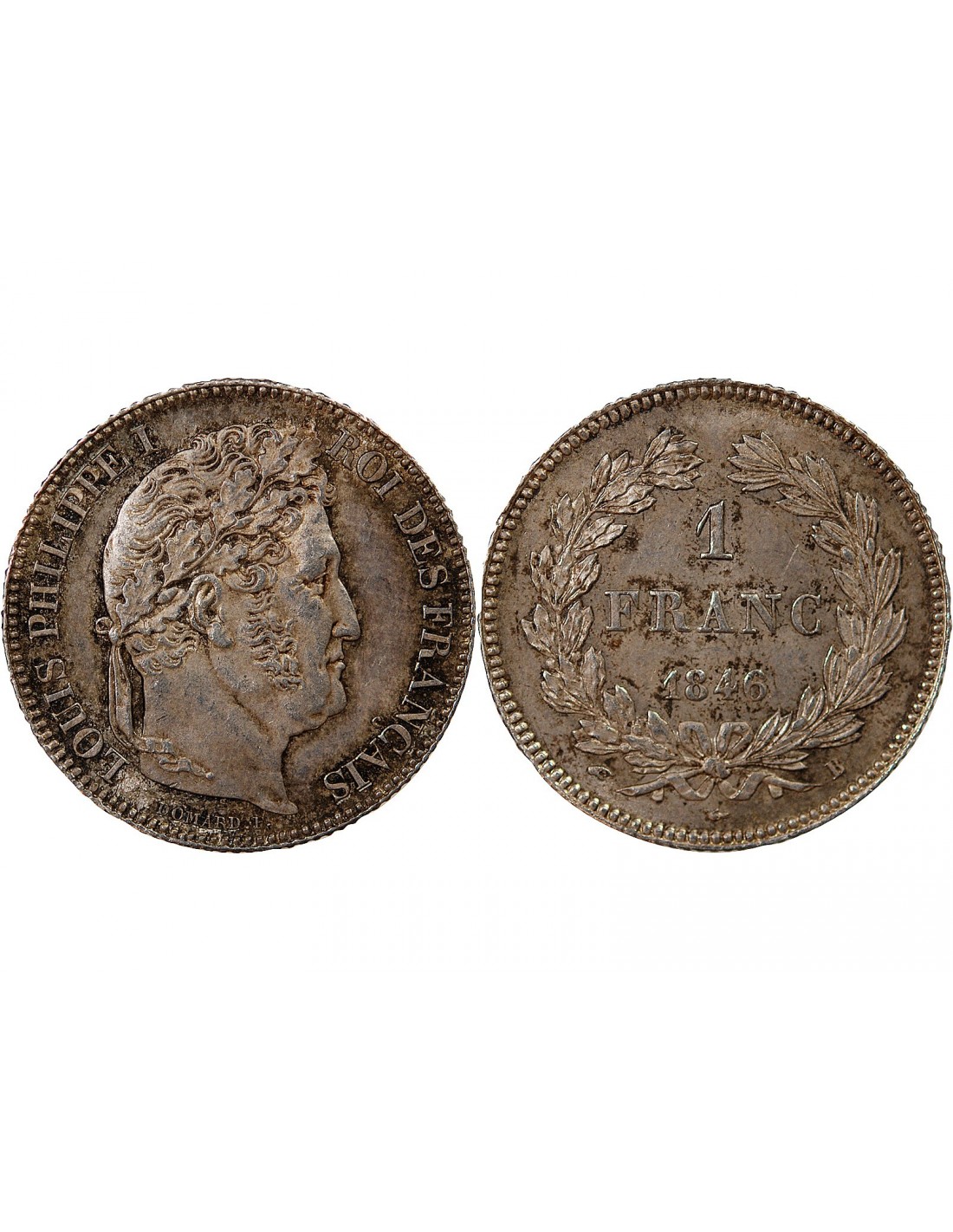 France Louis Philippe Ier - 1 Franc Argent, Tête laurée, 1846 B Rouen