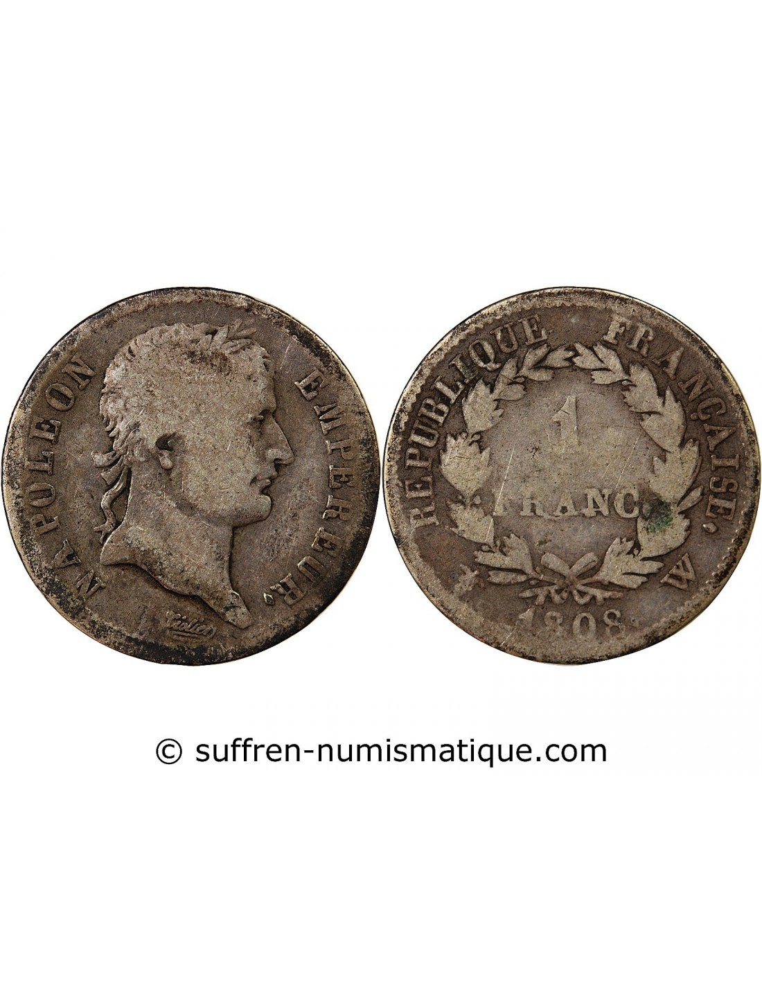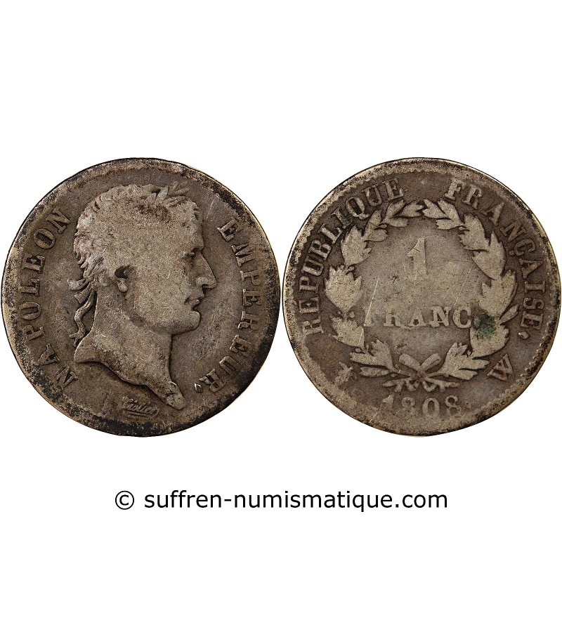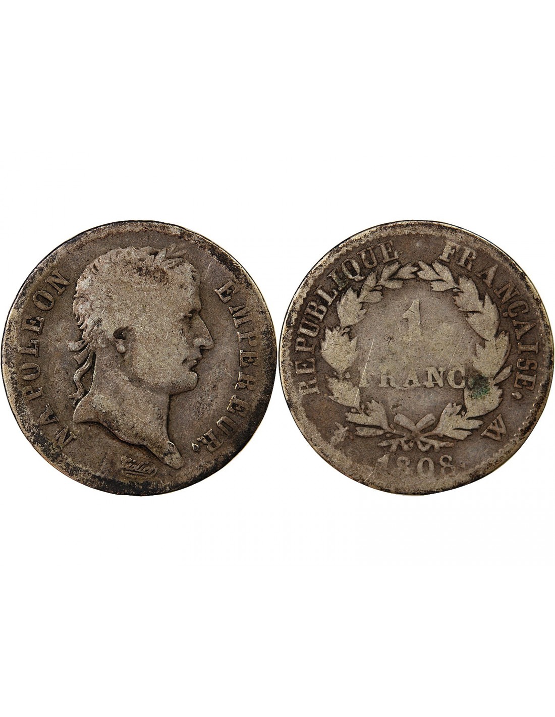 NAPOLEON Ier - 1 FRANC ARGENT 1808 W LILLE Type République