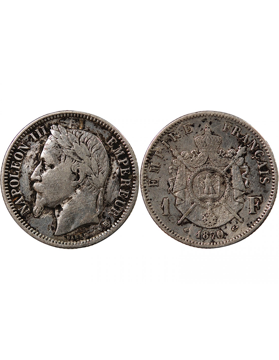 NAPOLEON III - 1 FRANC ARGENT 1870 BB STRASBOURG