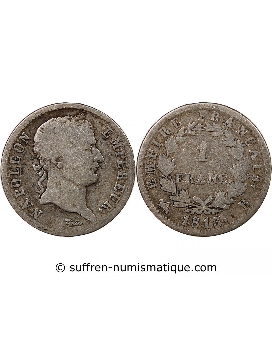 NAPOLEON Ier - 1 FRANC ARGENT 1813 B ROUEN