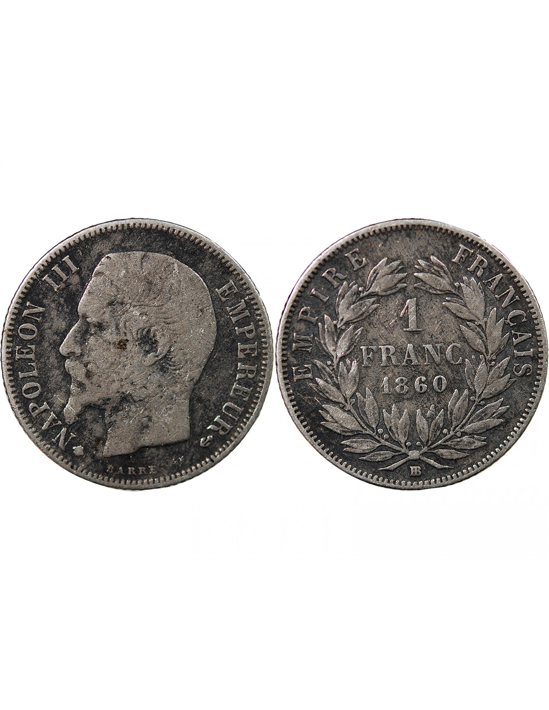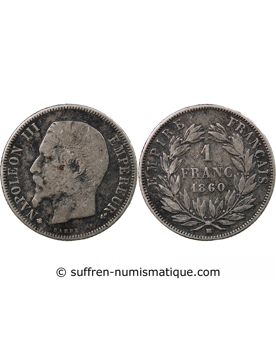 NAPOLEON III - 1 FRANC ARGENT 1860 BB STRASBOURG