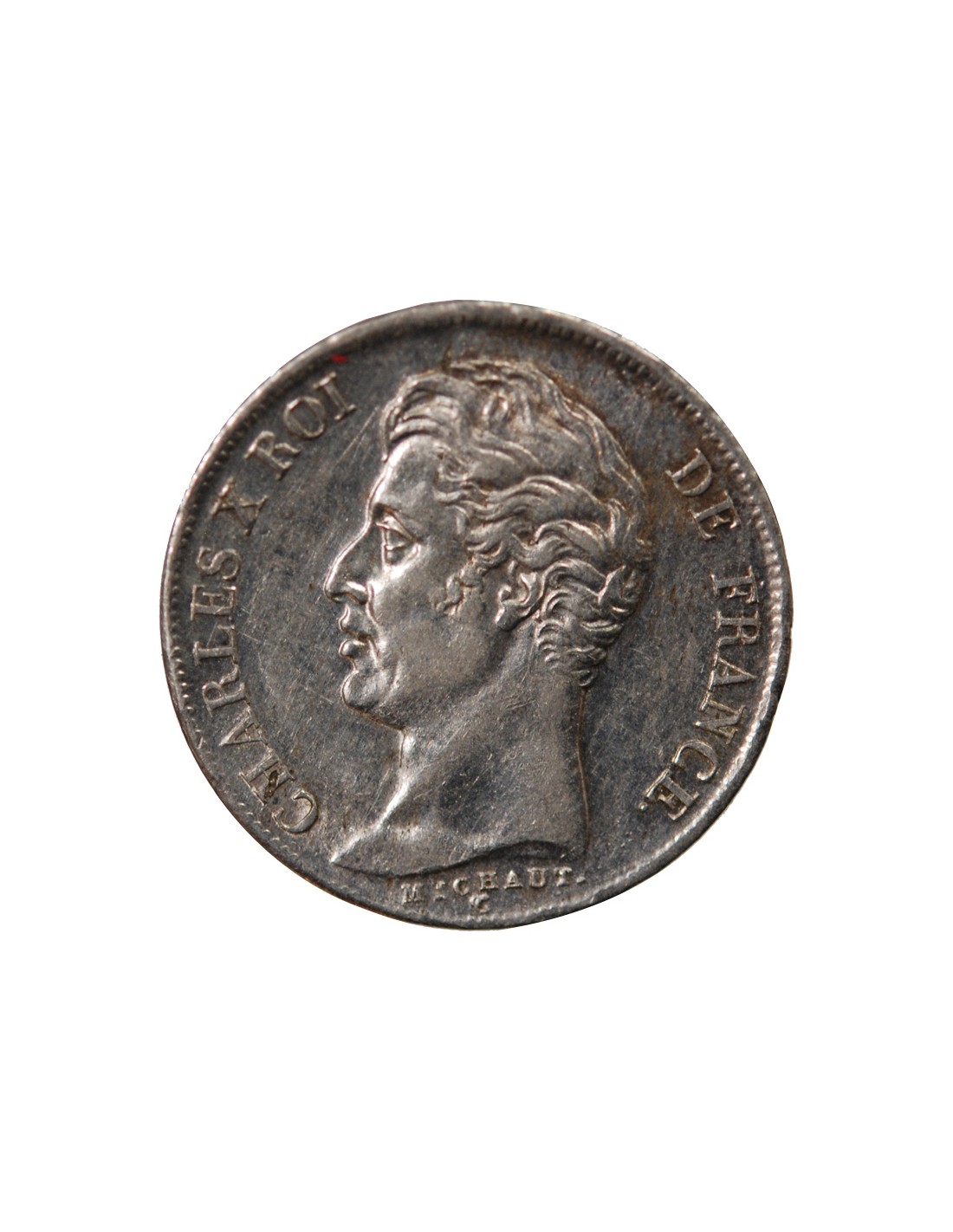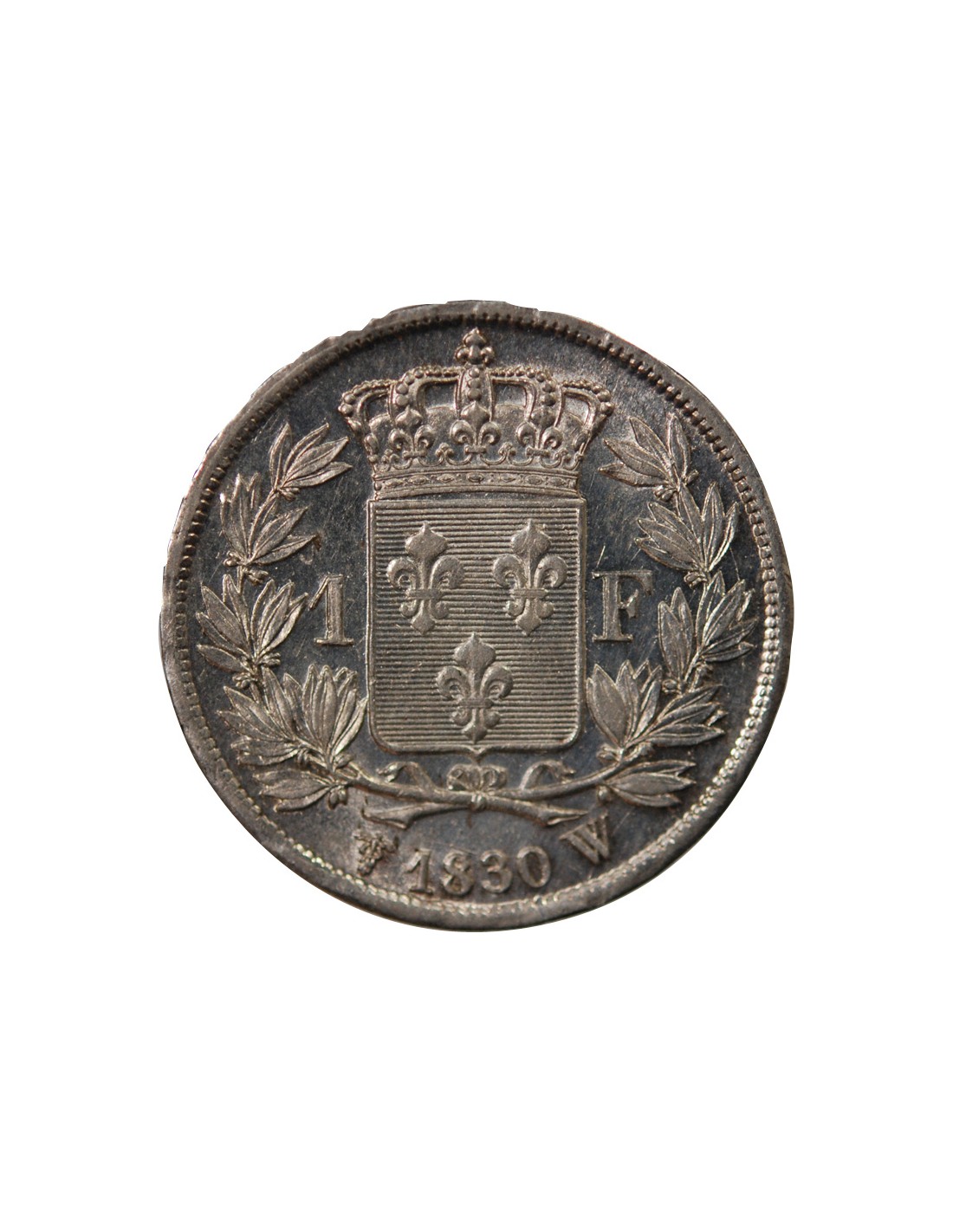 CHARLES X - 1 FRANC ARGENT, TRANCHES EN CREUX, 5 FEUILLES - 1830 W LILLE