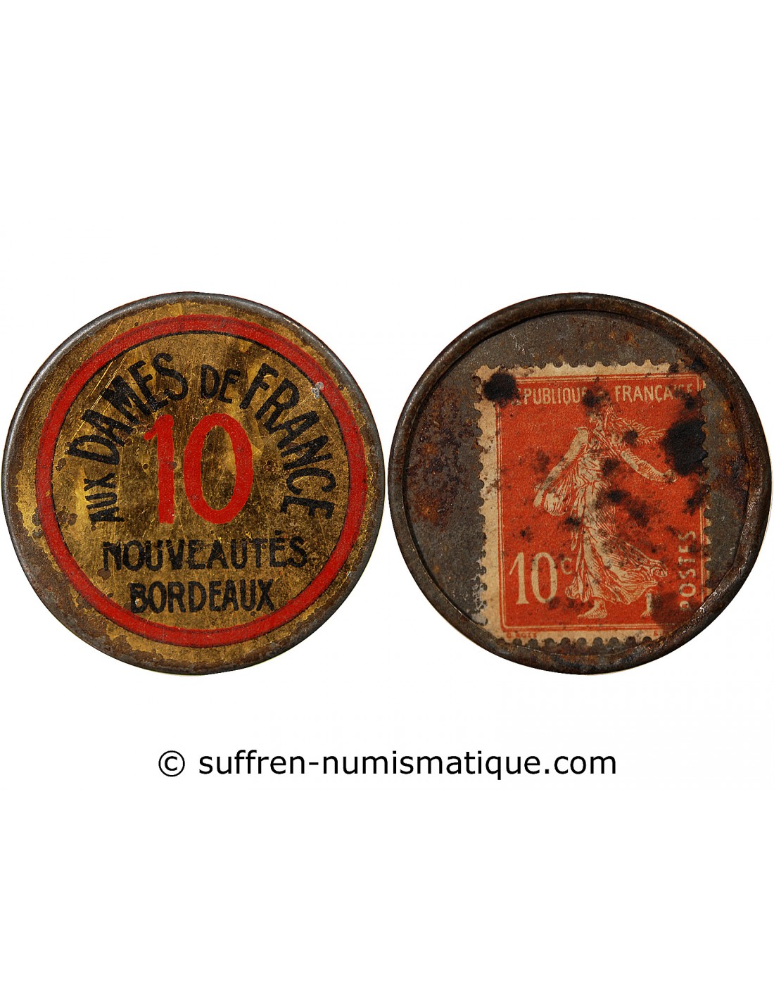 AUX DAMES DE FRANCE, BORDEAUX - TIMBRE MONNAIE 10 Cts Rouge