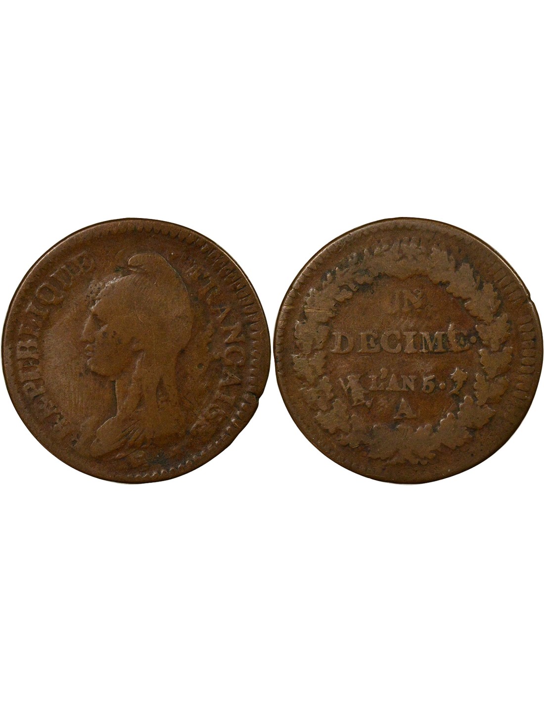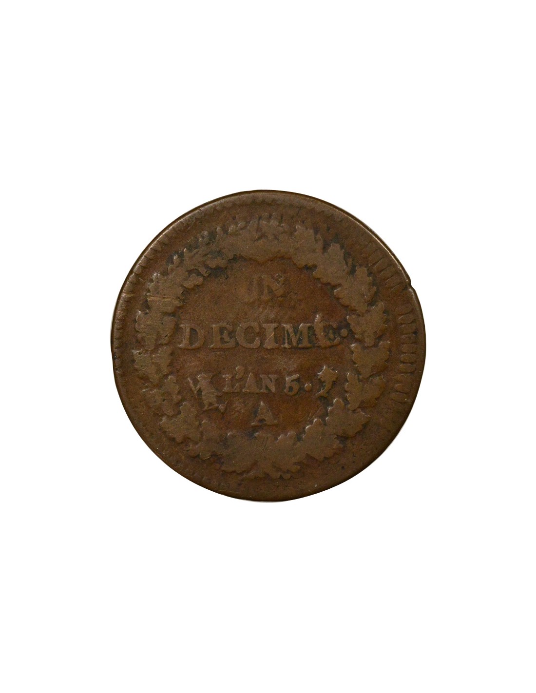 "France Dupré - Decime, Surfrappe du 2 Décimes - An 5 A Paris