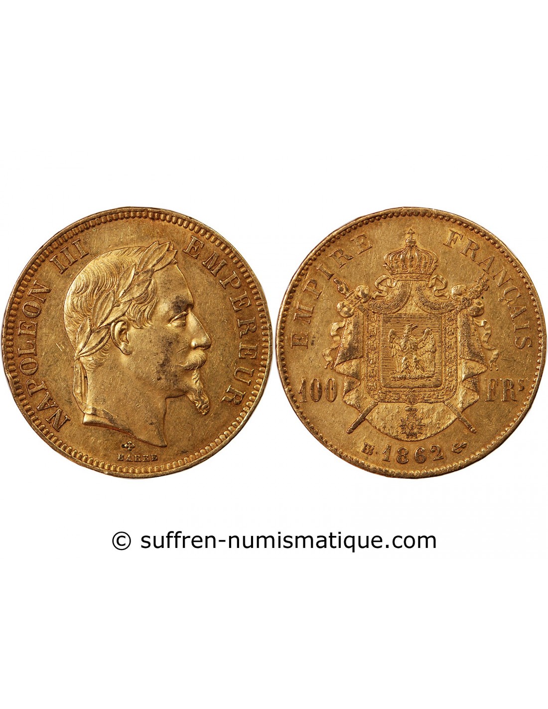 NAPOLEON III - 100 FRANCS OR 1862 BB STRASBOURG