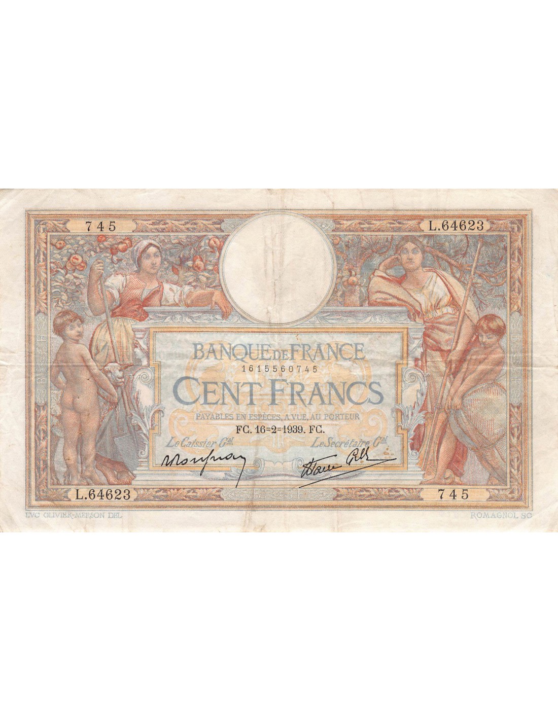 FRFRANCE, LUC-OLIVIER MERSON - 100 FRANCS 16/02/1939 - TTB