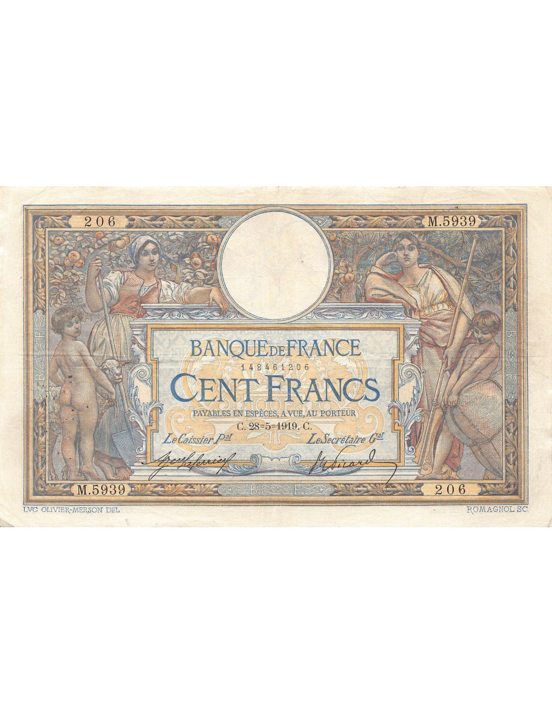 FRANCE, LUC-OLIVIER MERSON - 100 FRANCS 28/05/1919 - TTB