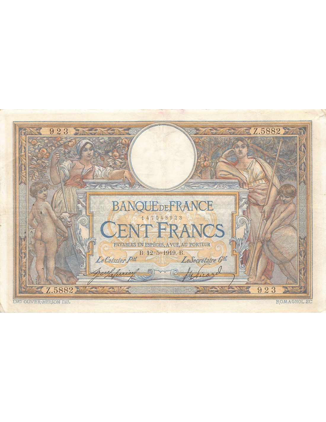 FRANCE, LUC-OLIVIER MERSON - 100 FRANCS 12/05/1919 - TTB