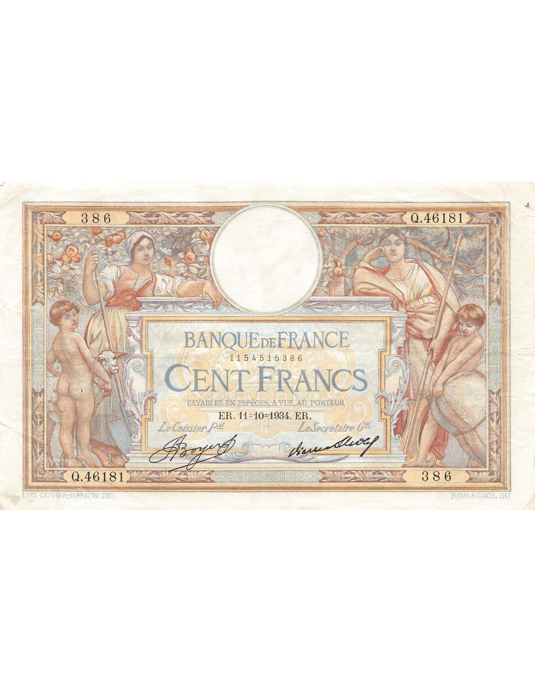 France Luc-Olivier Merson - 100 Francs 11/10/1934 - Ttb