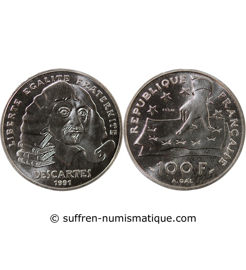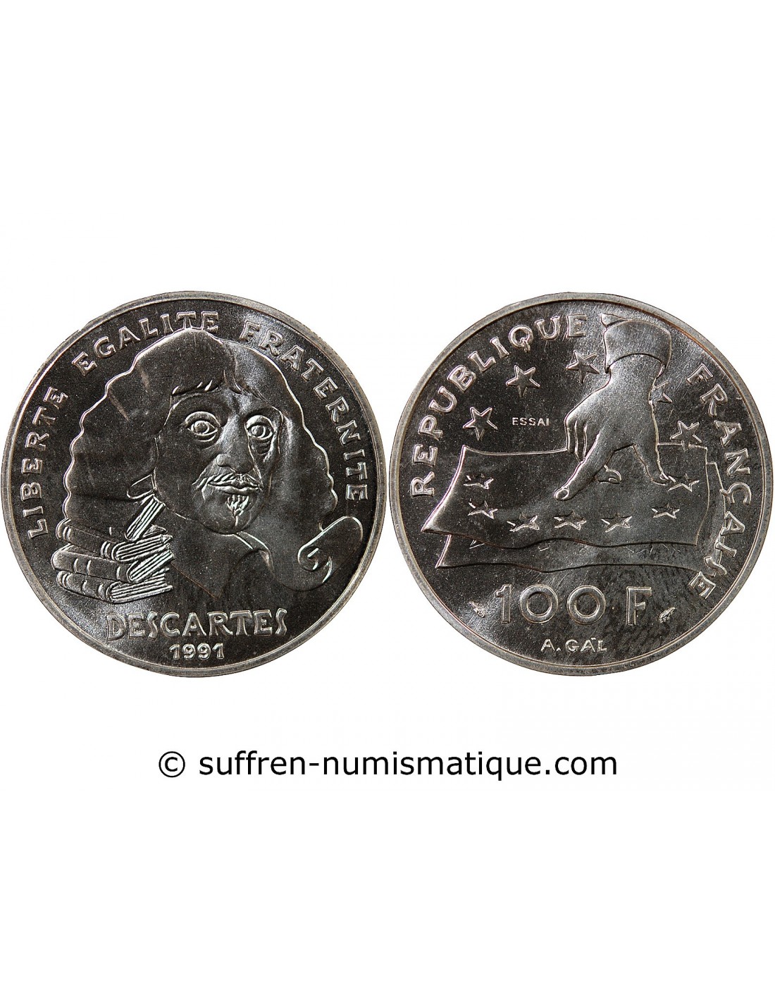 DESCARTES - ESSAI DE 100 FRANCS ARGENT 1991