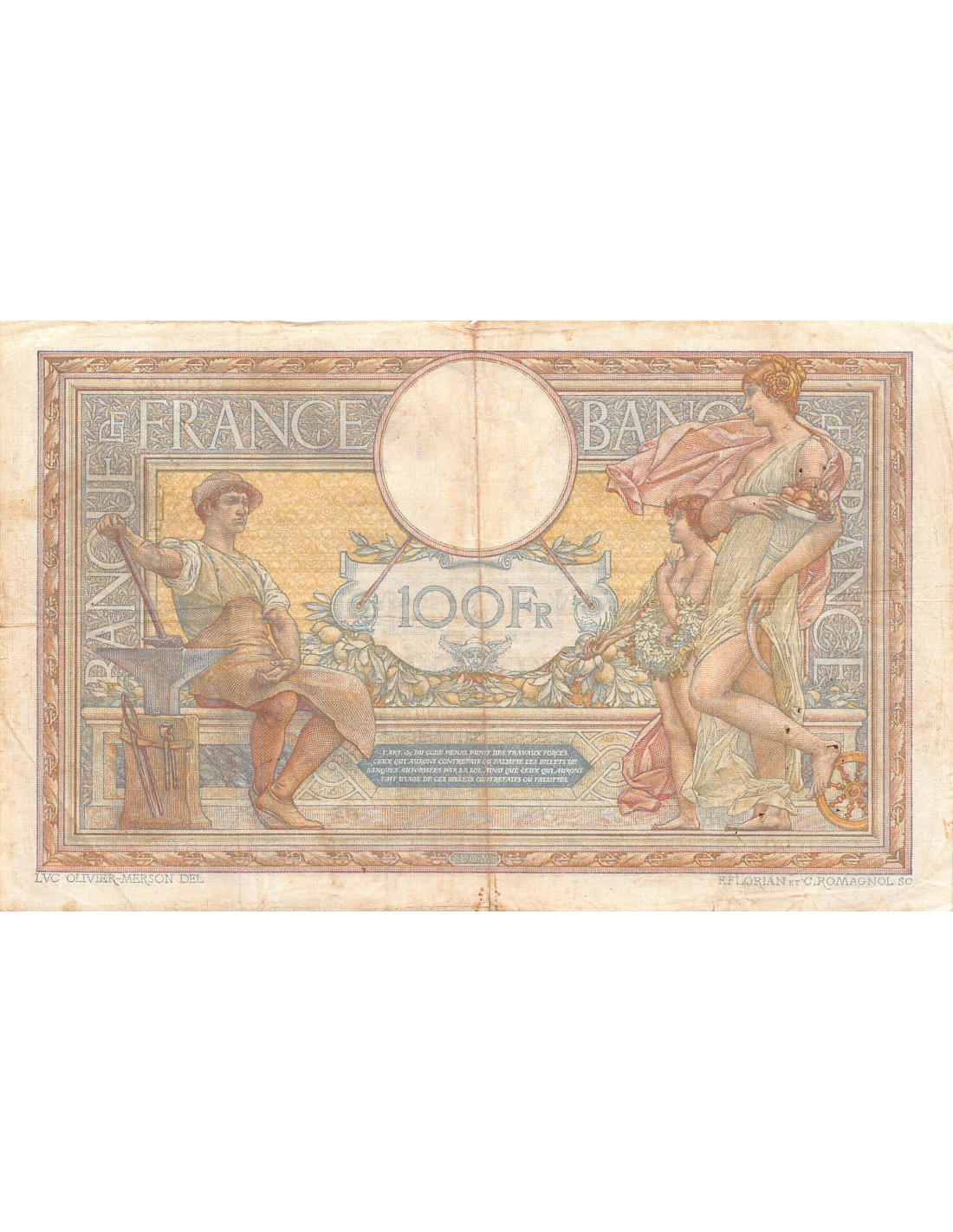 Vendu Billets du Monde France FRANCE LUC-OLIVIER MERSON - 100 FRANCS 07/06/1923 - TB SUFFREN sf_19664 10,00 € nombreux épinglages, plis, salissures, taches, coupures en marge View