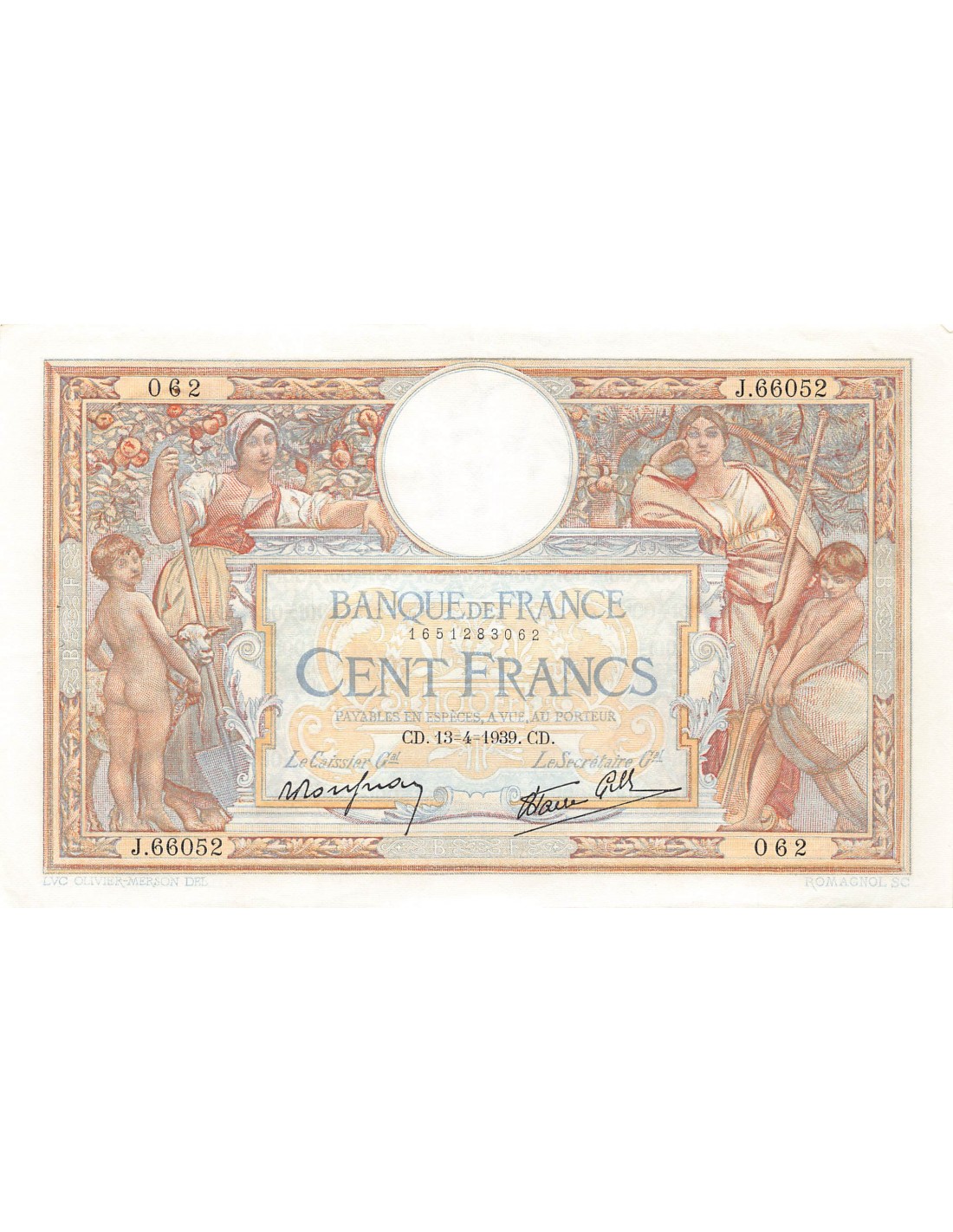 France 100 Francs - Luc Olivier Merson - 13-04-1939 - Série J.66052