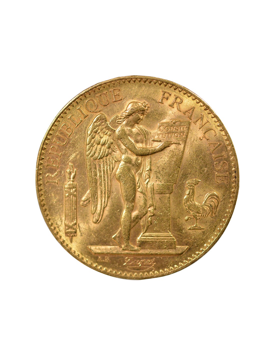 La pièce est associée à une figure allégorique connue sous le nom de "Génie". Cette figure est couramment représentée sur les pièces françaises de cette époque et symbolise l'esprit de la France ou les valeurs de la République.