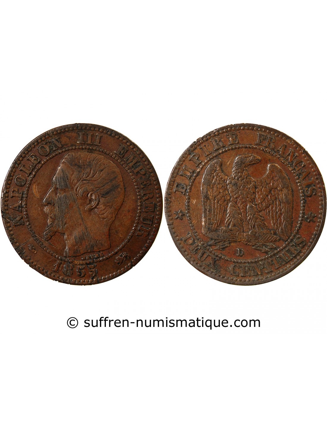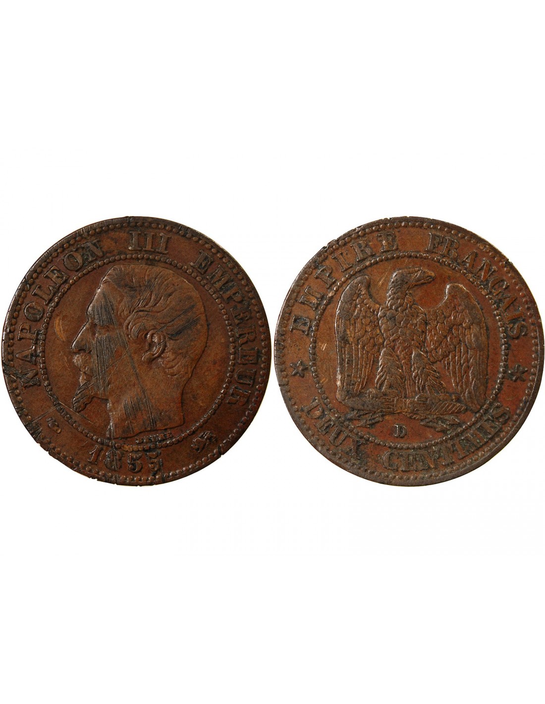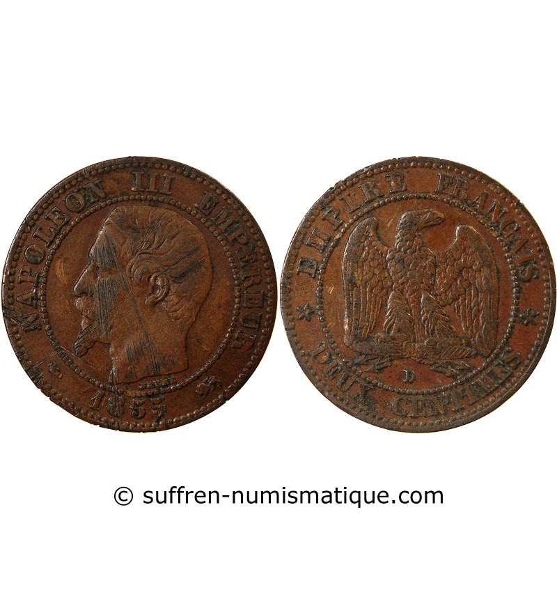 France Napoléon III - 2 Centimes 1855 D Lyon Variété Chien Petit D