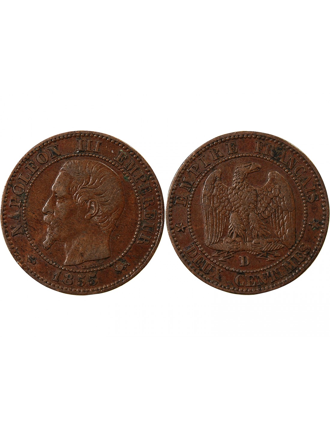 France Napoléon III - 2 Centimes 1855 D Lyon - Ancre Grand D Grand Lion