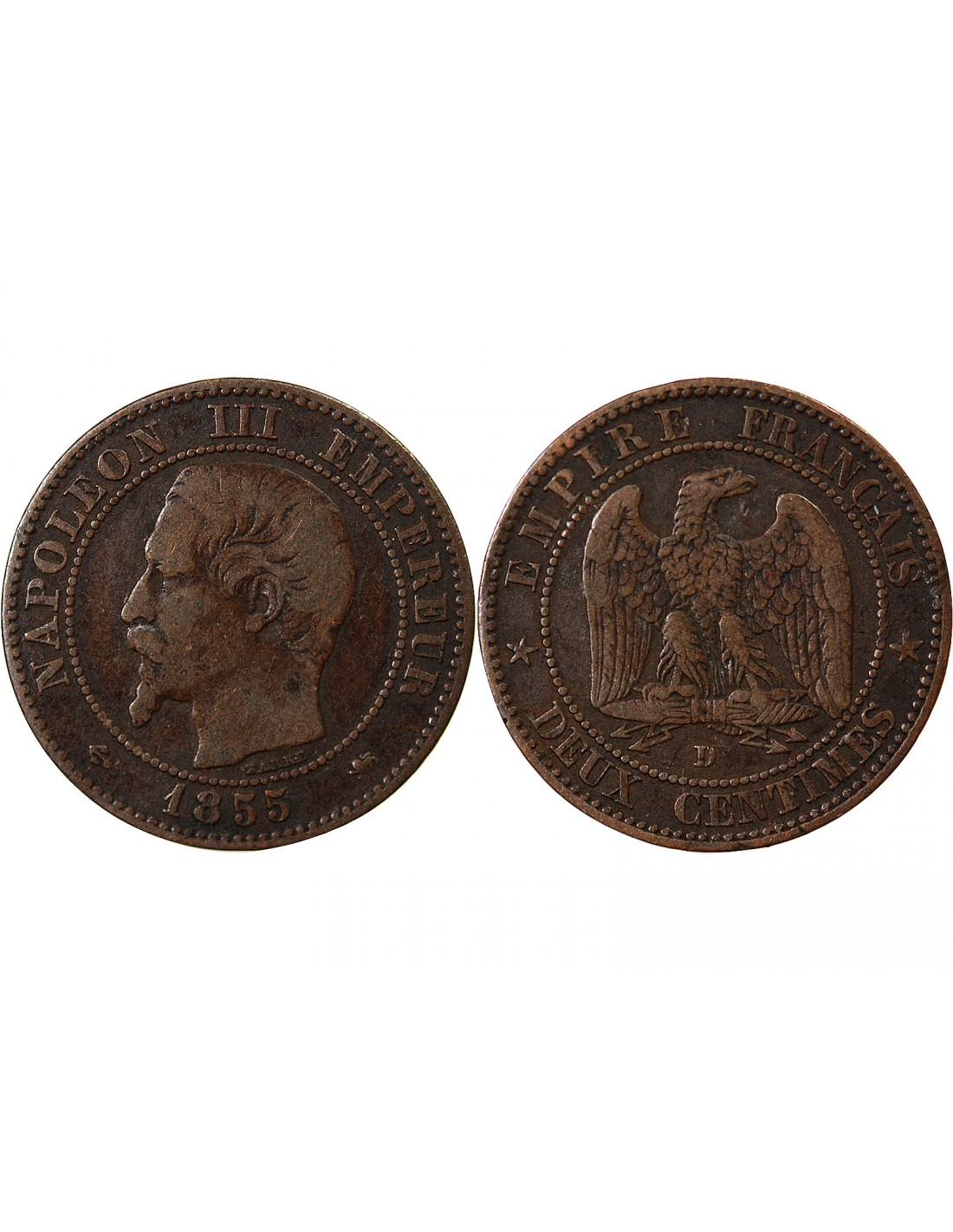 France Napoléon III - 2 Centimes 1855 D Lyon - Ancre Petit D Petit Lion
