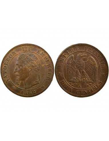 En stock 2 Centimes France Napoléon III - 2 Centimes 1862 K Bordeaux SUFFREN sf_19384 10,00 € Charles Louis Napoléon Bonaparte, dit Louis-Napoléon Bonaparte puis Napoléon III, est né à Paris, le 20 avril 1808 et mort à Chislehurst au Royaume-Uni, le 9 janvier 1873. Il est le premier président de la République française, élu le 10 décembre 1848 au suffrage universel masculin, avant d'être proclamé empereur des Français le 2 décembre 1852 sous le... Ajouter au panier