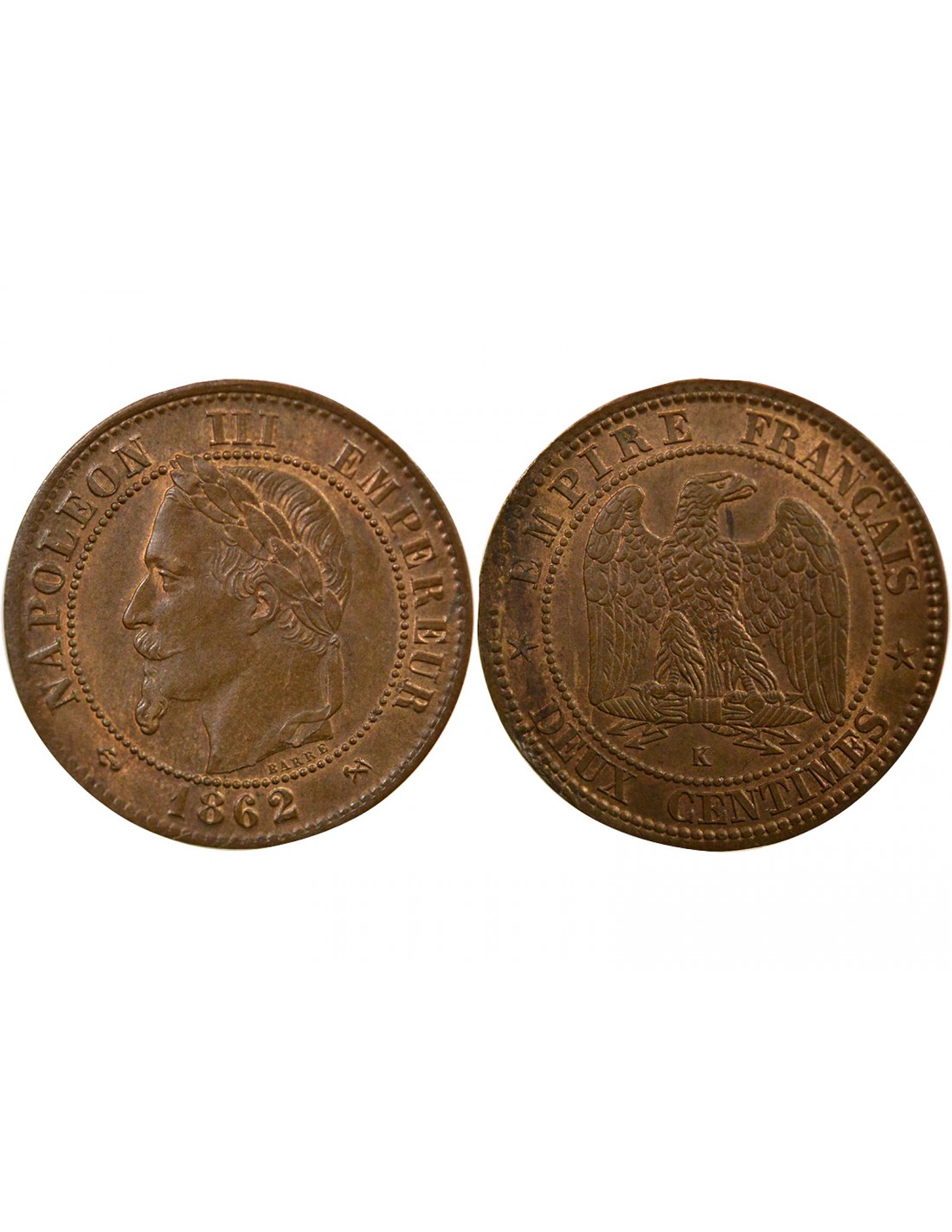 Vendu 2 Centimes France Napoléon III - 2 Centimes 1862 K Bordeaux SUFFREN sf_19157 8,00 € Charles Louis Napoléon Bonaparte, dit Louis-Napoléon Bonaparte puis Napoléon III, est né à Paris, le 20 avril 1808 et mort à Chislehurst au Royaume-Uni, le 9 janvier 1873. Il est le premier président de la République française, élu le 10 décembre 1848 au suffrage universel masculin, avant d'être proclamé empereur des Français le 2 décembre 1852 sous le... View