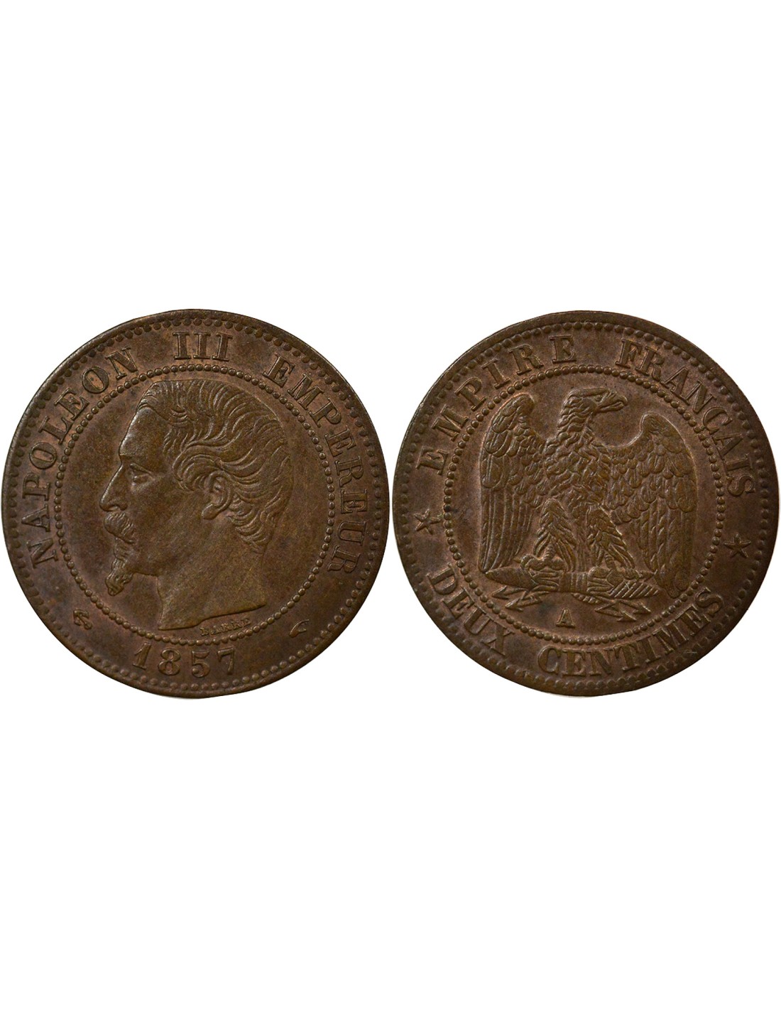 Napoléon III Tête nue 2 centimes Bronze 1857 A - Paris