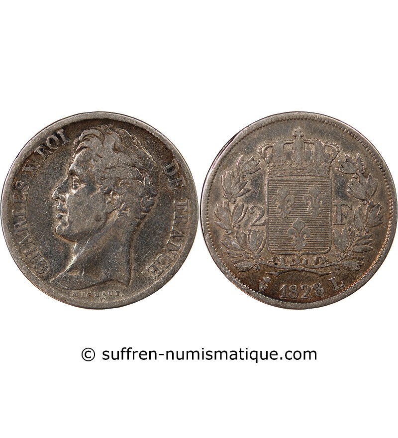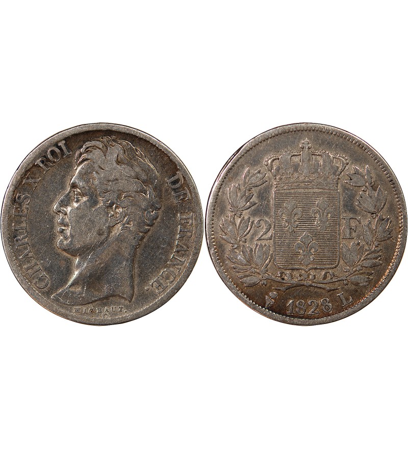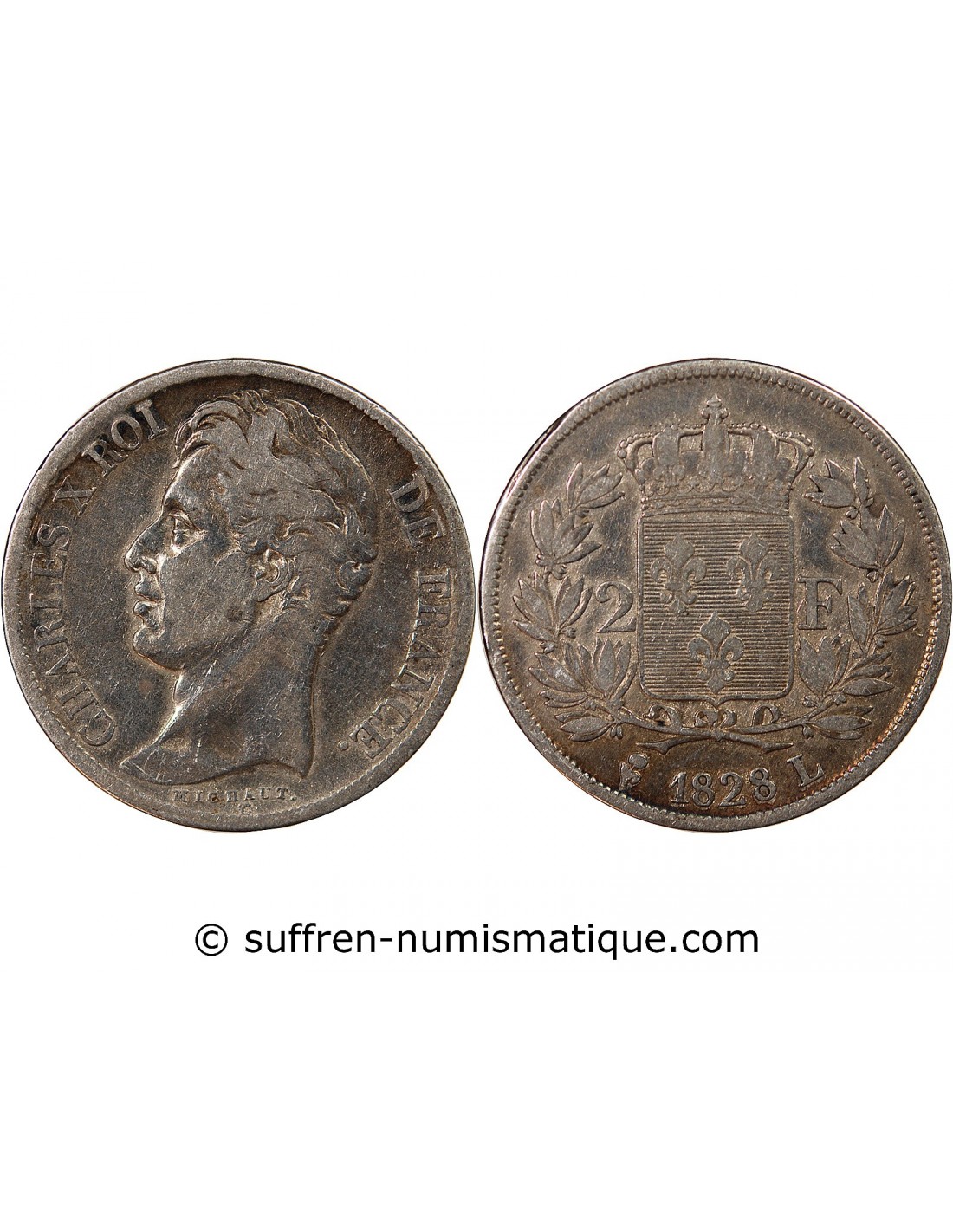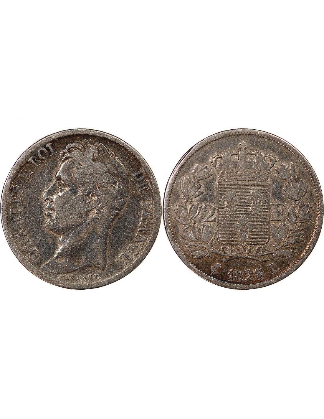 CHARLES X - 2 FRANCS ARGENT 1828 L BAYONNE