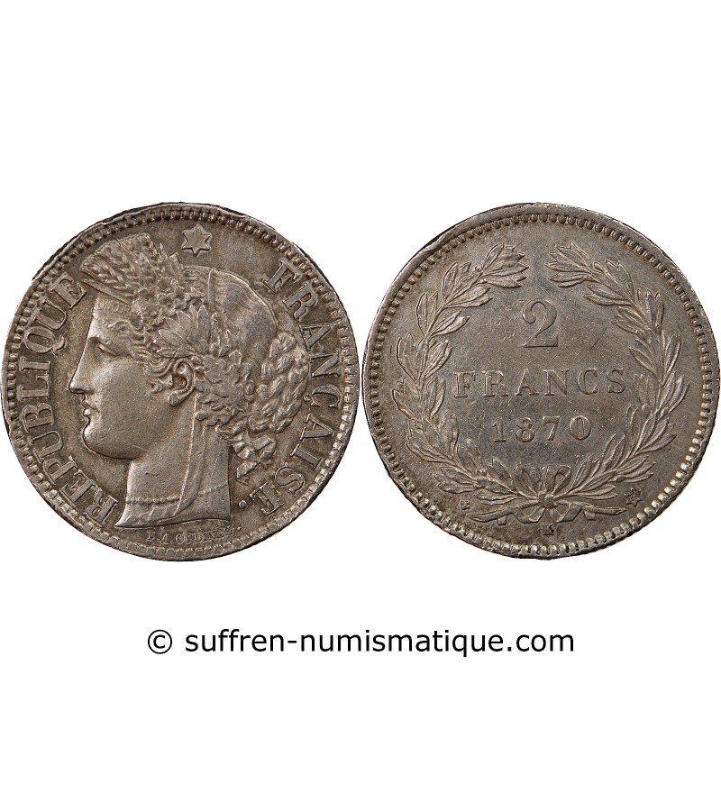 CERES - 2 FRANCS 1870 K BORDEAUX - Sans Légende - Variété Etoile