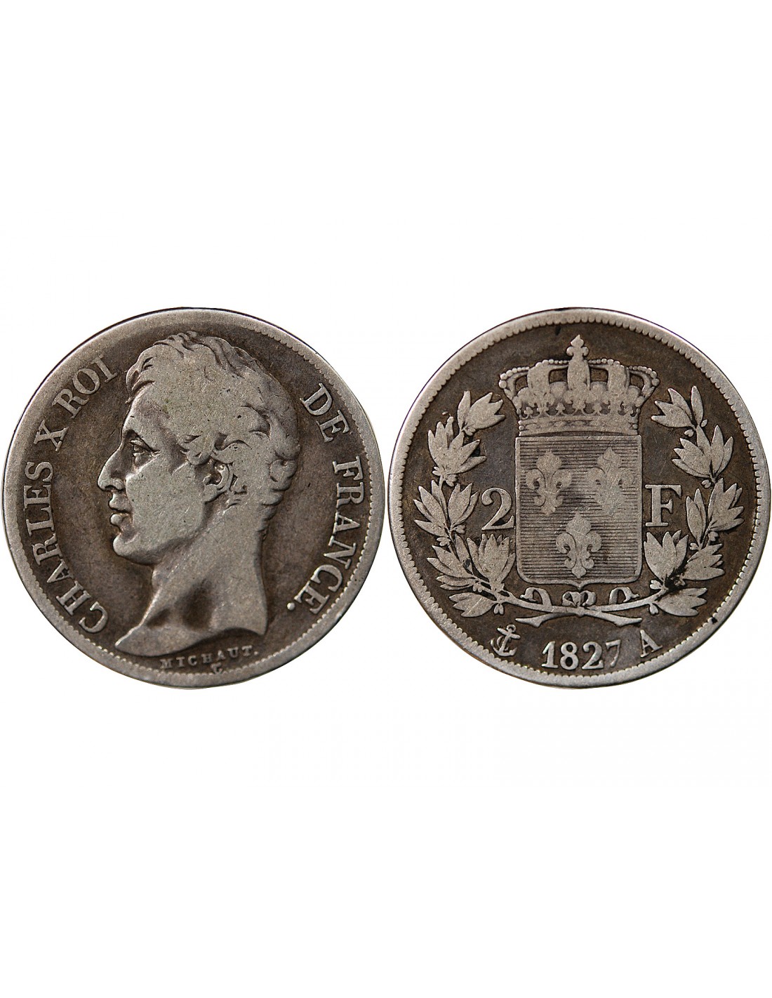 France CHARLES X - 2 FRANCS ARGENT - 1827 A PARIS