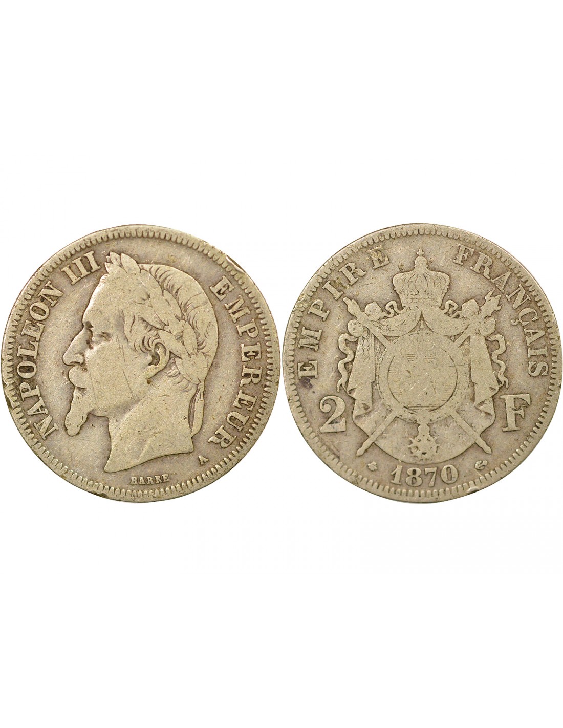 Vendu 2 Francs France Napoléon III - 2 Francs Argent, Tête laurée - 1870 A Paris SUFFREN SFP3353 55,00 € View