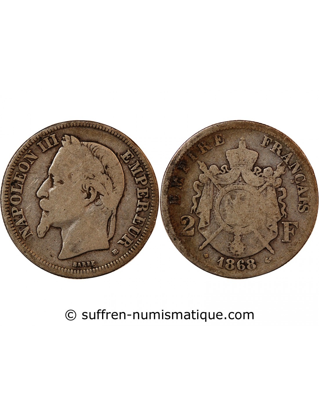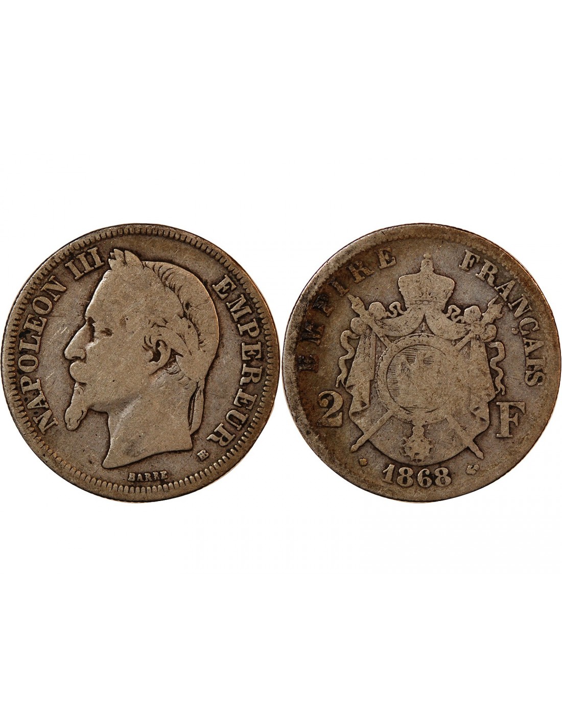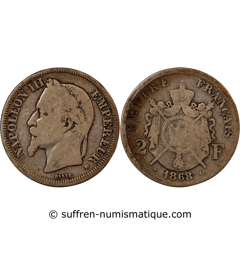 NAPOLEON III - 2 FRANCS ARGENT 1868 BB STRASBOURG