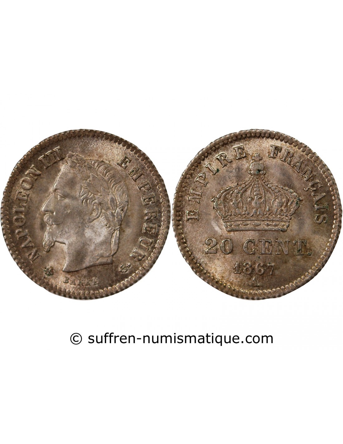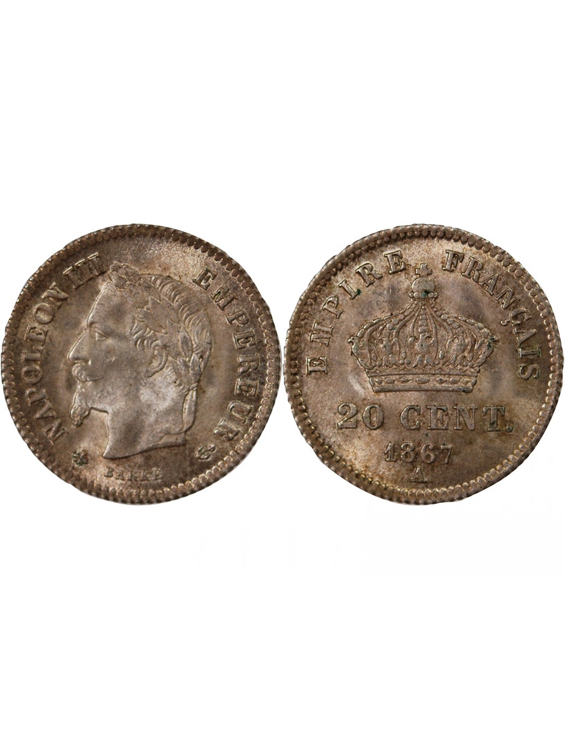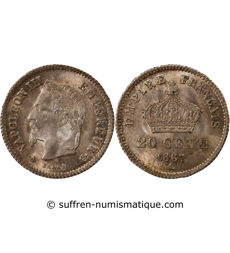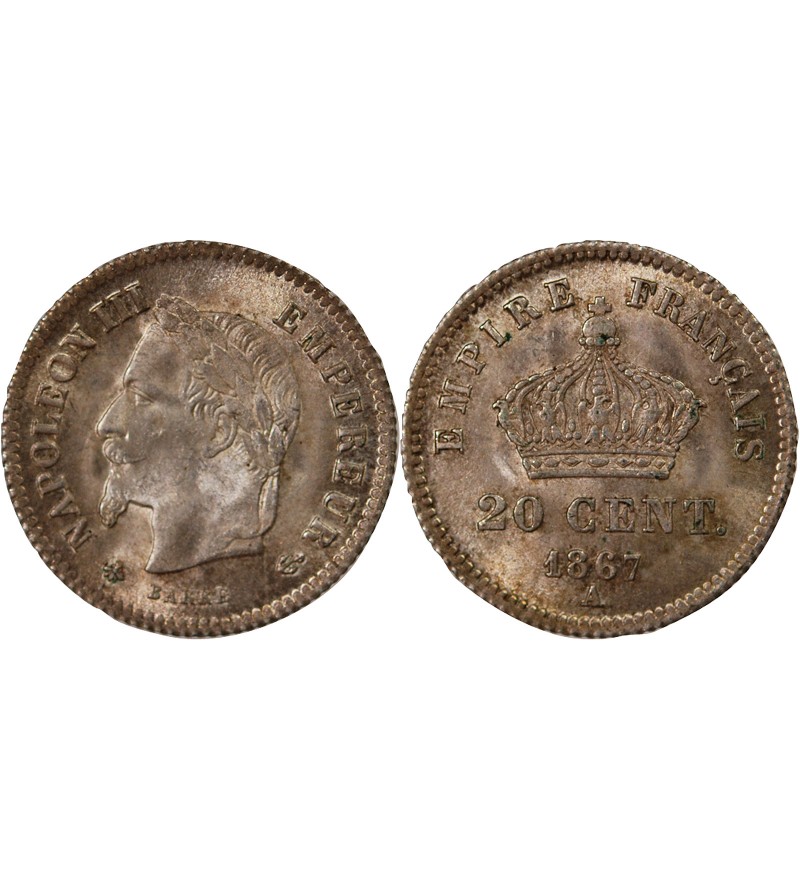 NAPOLEON III - 20 CENTIMES ARGENT 1867 A PARIS