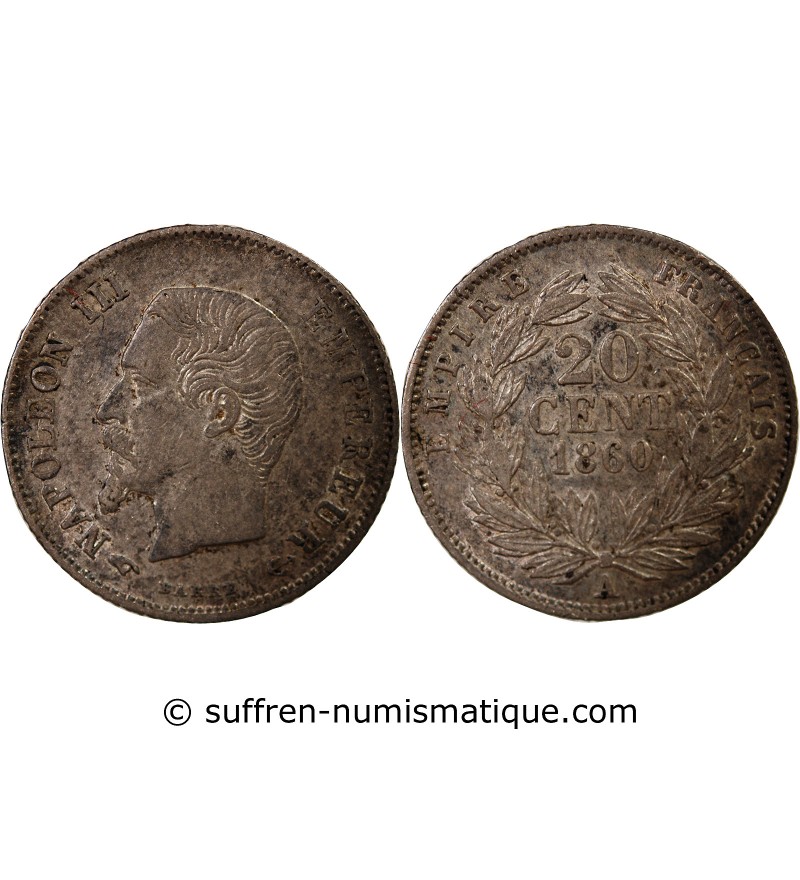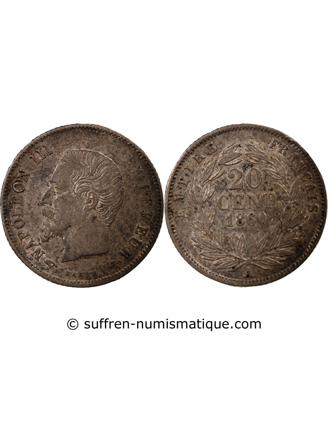 NAPOLEON III, TÊTE NUE - 20 CENTIMES ARGENT 1860 A PARIS