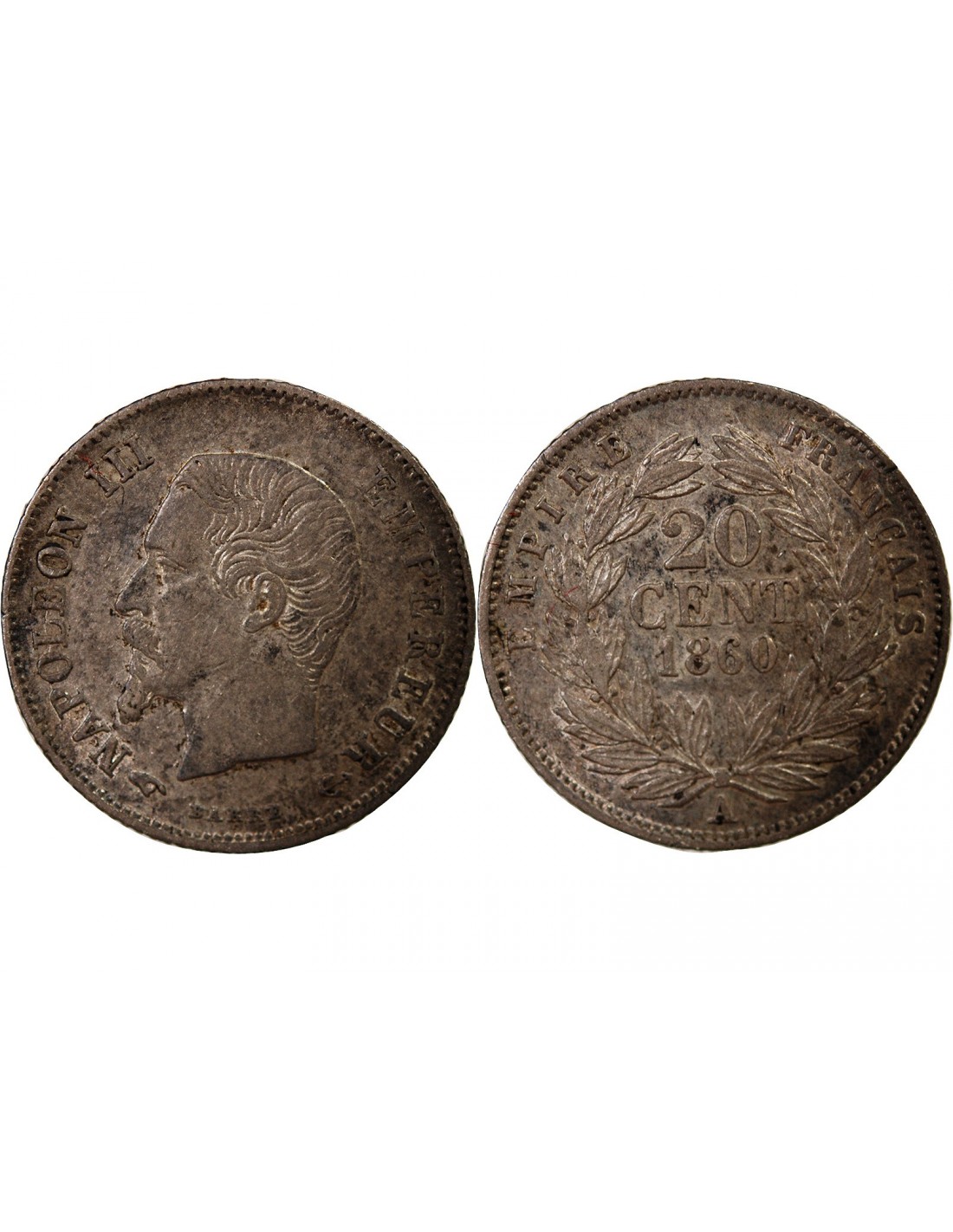 France Napoléon III, Tête Nue - 20 Centimes Argent 1860 A Paris