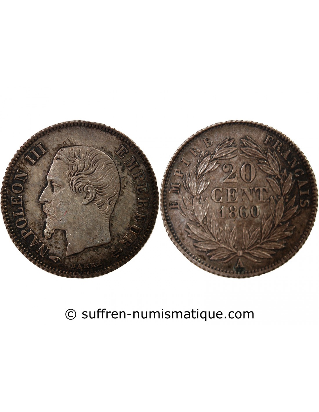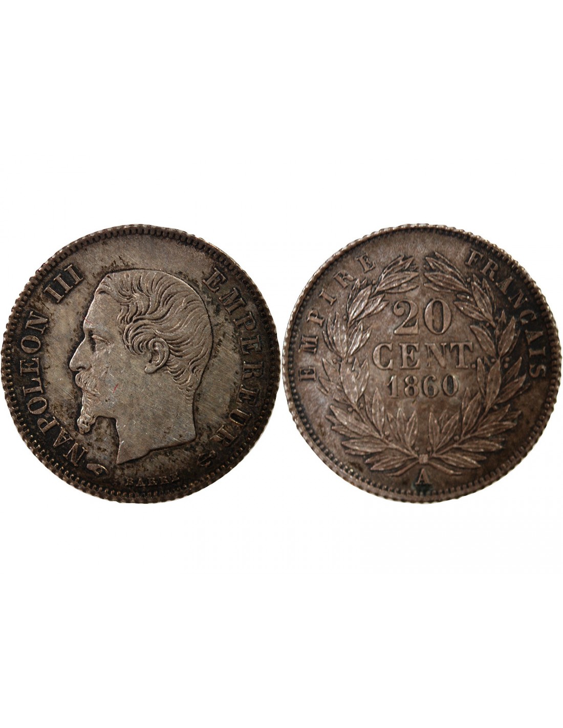 NAPOLEON III, TÊTE NUE - 20 CENTIMES ARGENT 1860 A PARIS