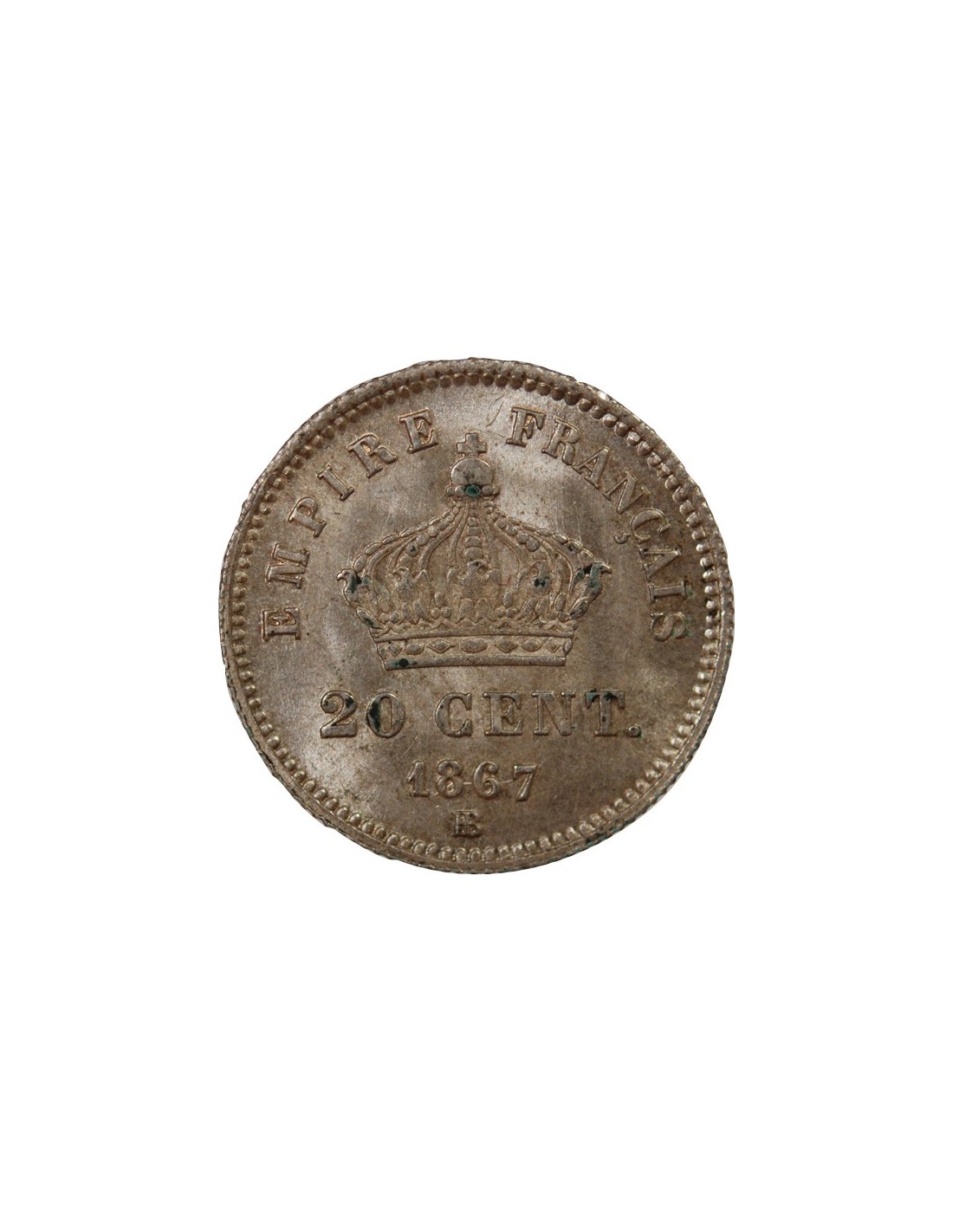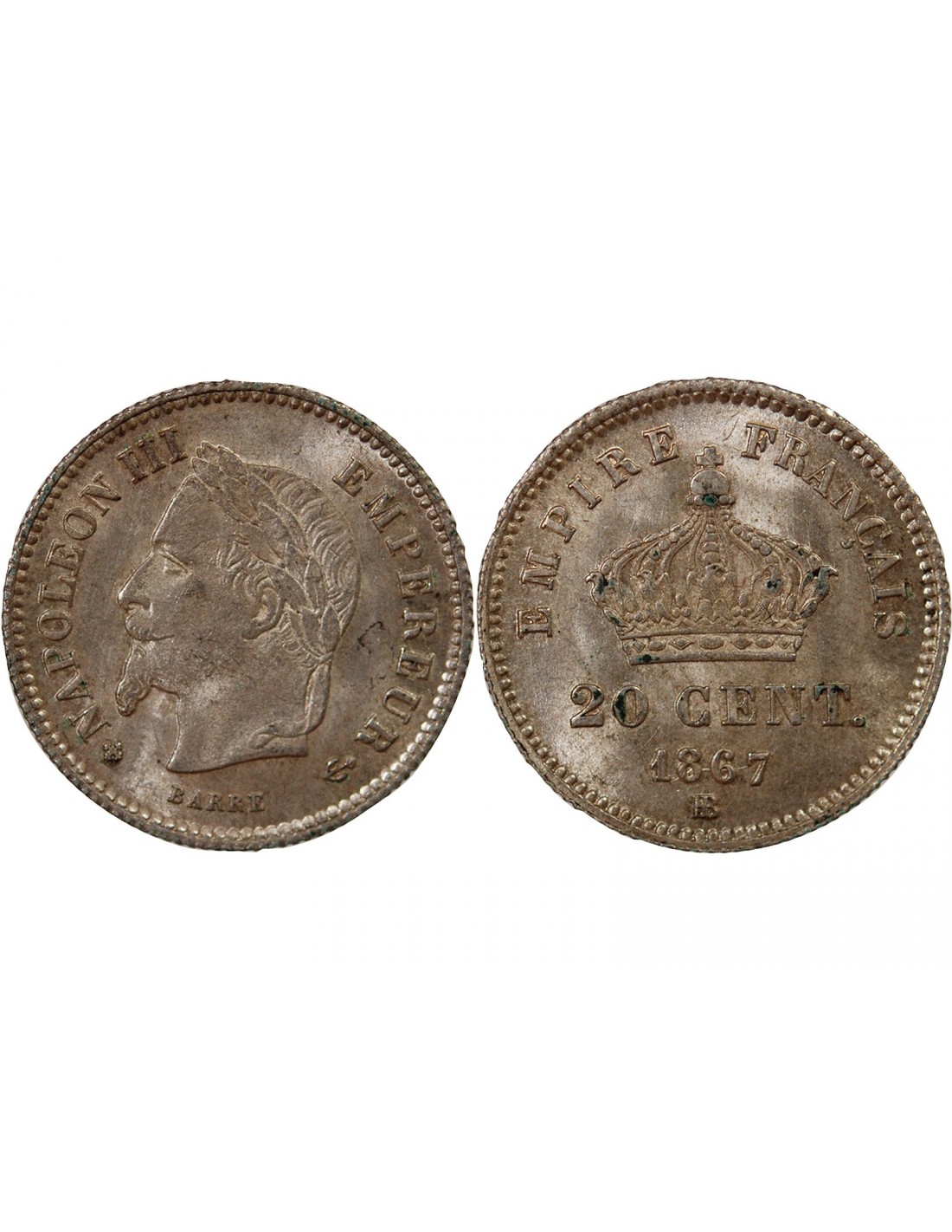 France Napoléon III, Tête Laurée - 20 Centimes Argent 1867 BB Strasbourg