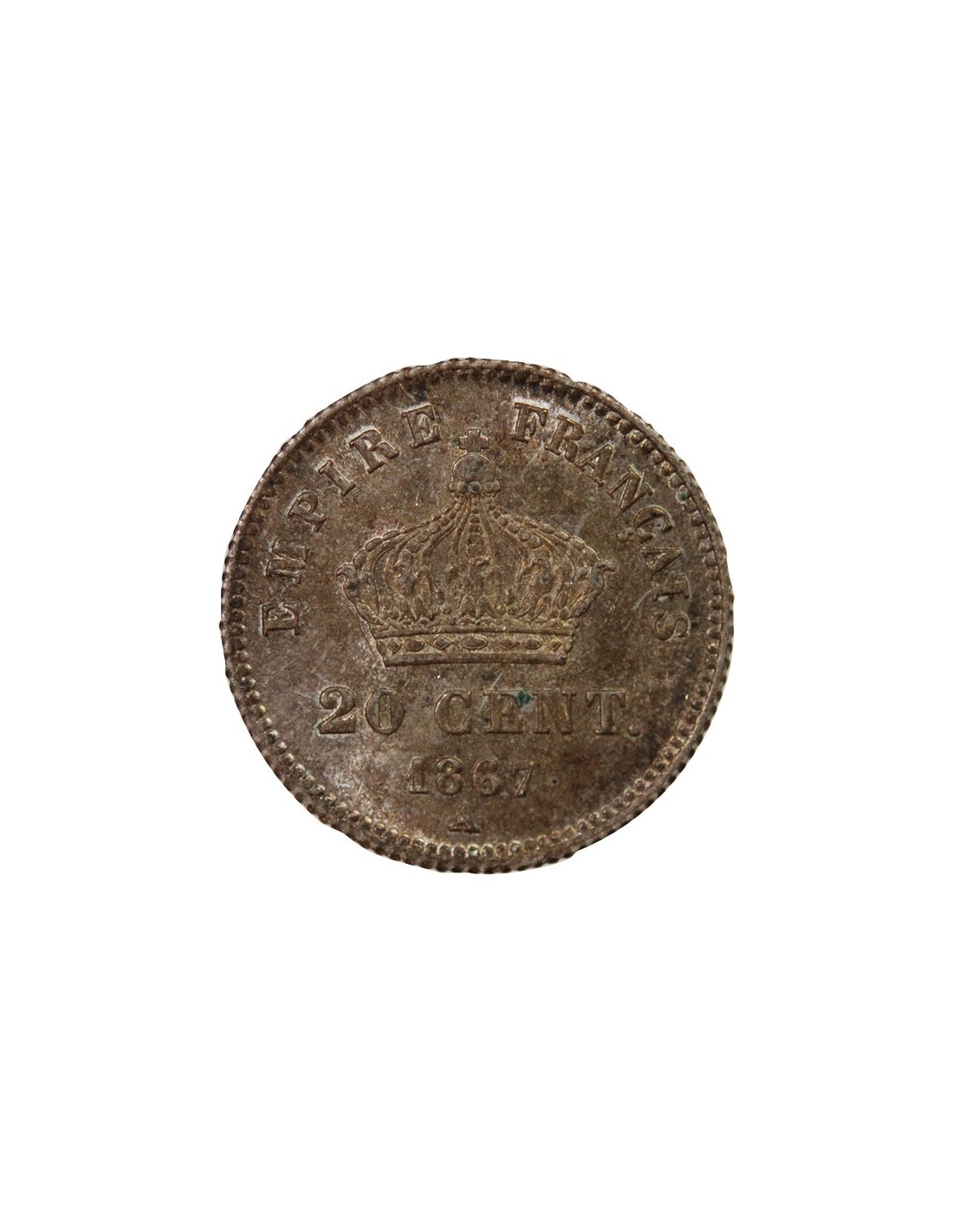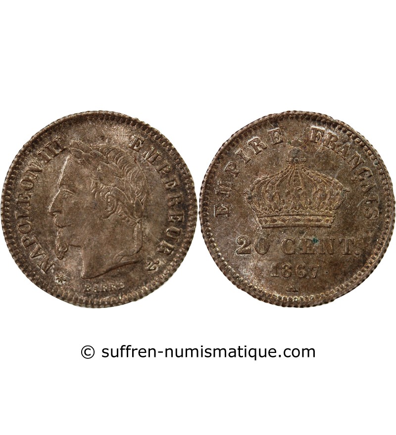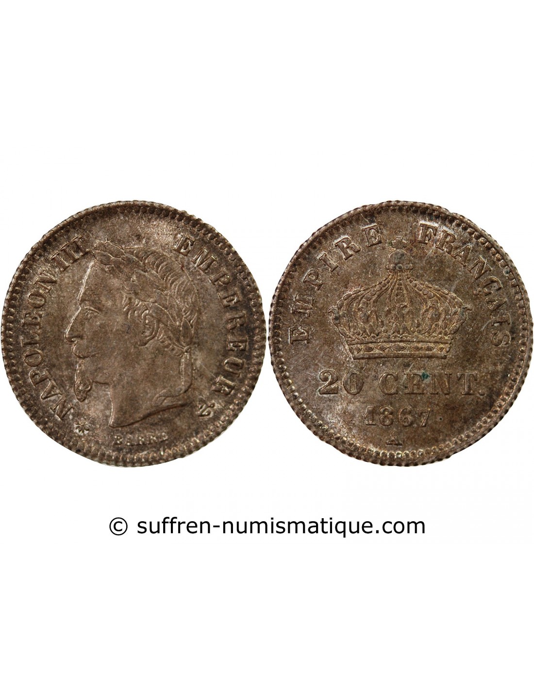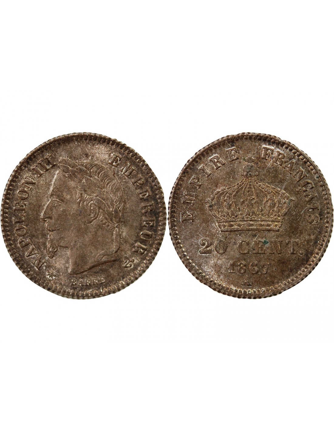 NAPOLEON III, TÊTE LAURÉE - 20 CENTIMES ARGENT 1867 A PARIS
