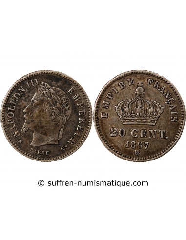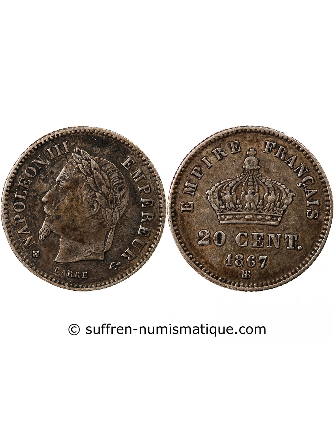 NAPOLEON III - 20 CENTIMES ARGENT 1867 BB STRASBOURG