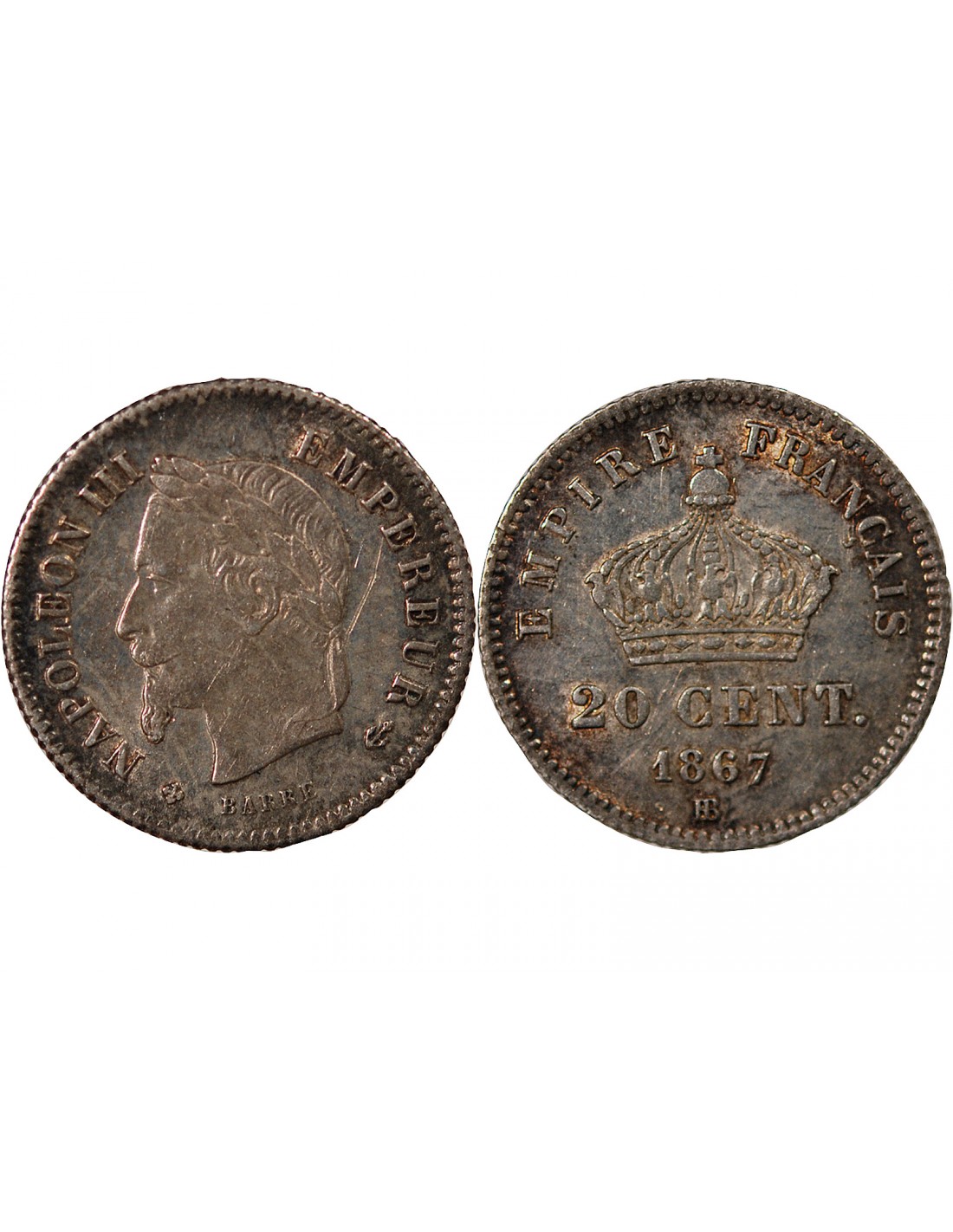 NAPOLEON III - 20 CENTIMES ARGENT 1867 BB STRASBOURG