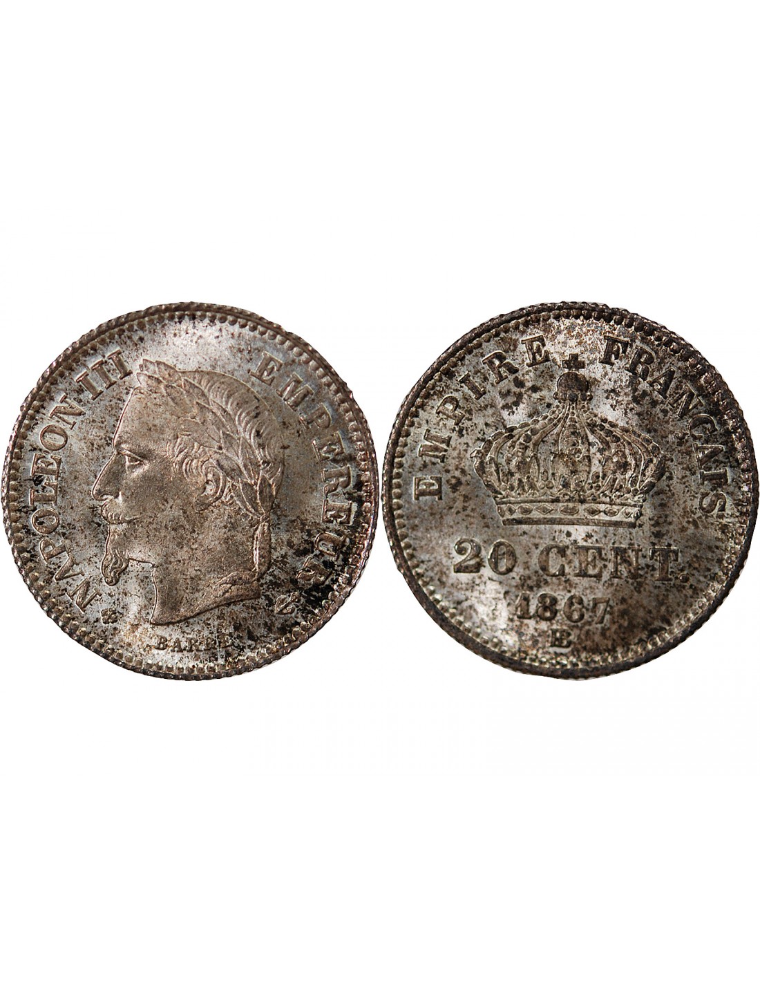 France Napoléon III - 20 Centimes Argent 1867 BB Strasbourg