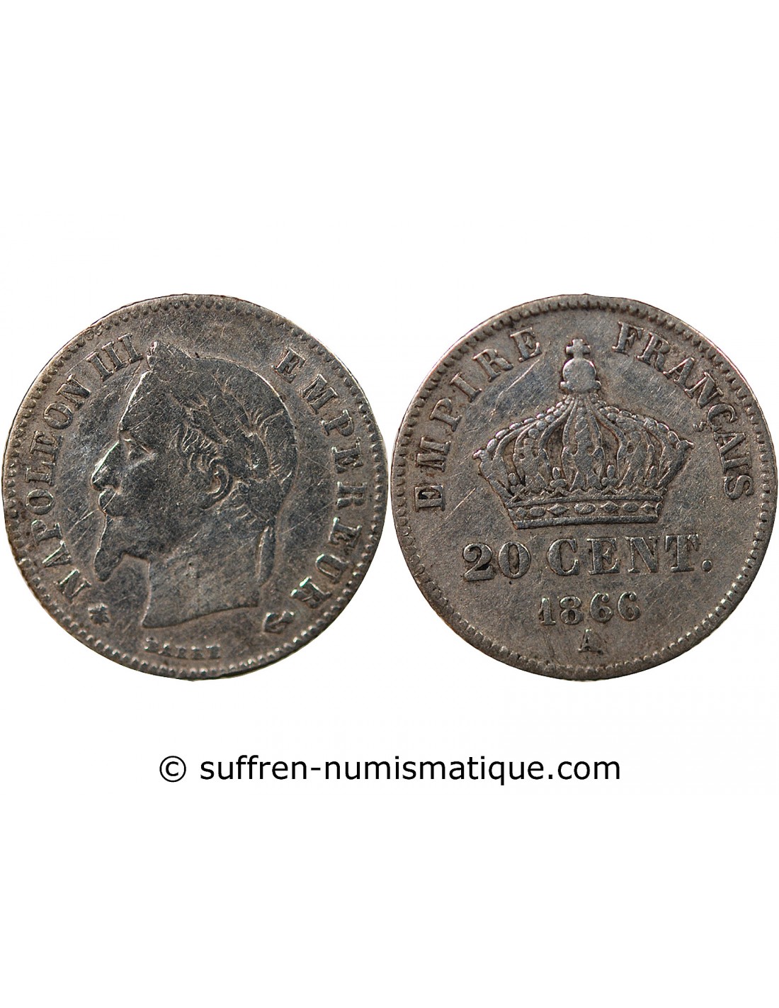 France Napoléon III - 20 Centimes Argent 1866 A Paris
