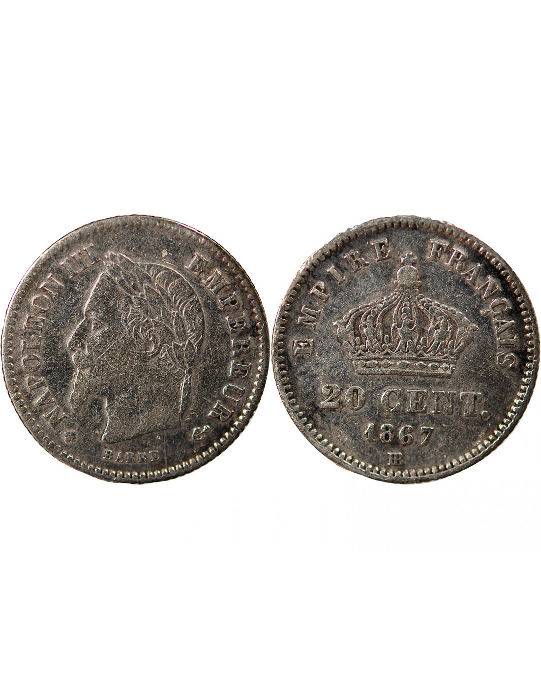 NAPOLEON III - 20 CENTIMES ARGENT 1867 BB STRASBOURG