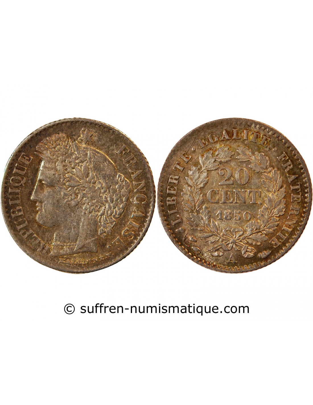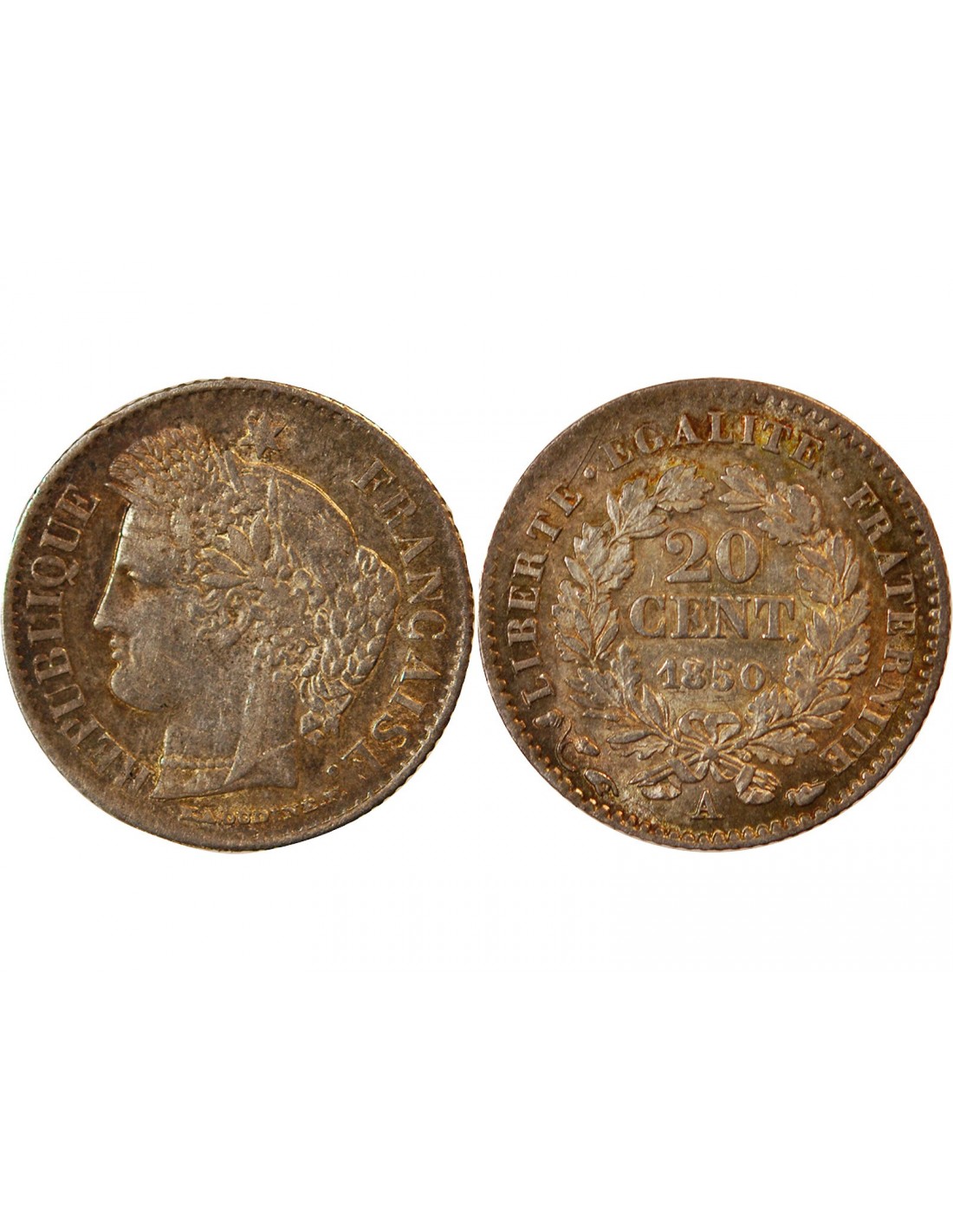 CERES - 20 CENTIMES ARGENT 1850 A PARIS - Oreille Basse