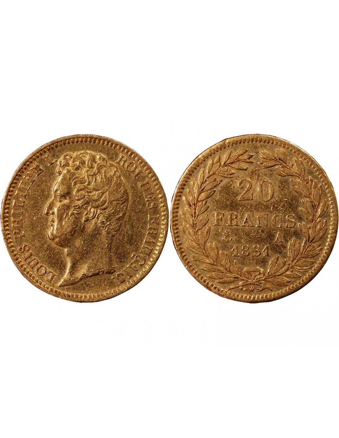 "LOUIS PHILIPPE? Ier - 20 FRANCS OR 1831 A PARIS Tête Nue Tranche en Relief"?"