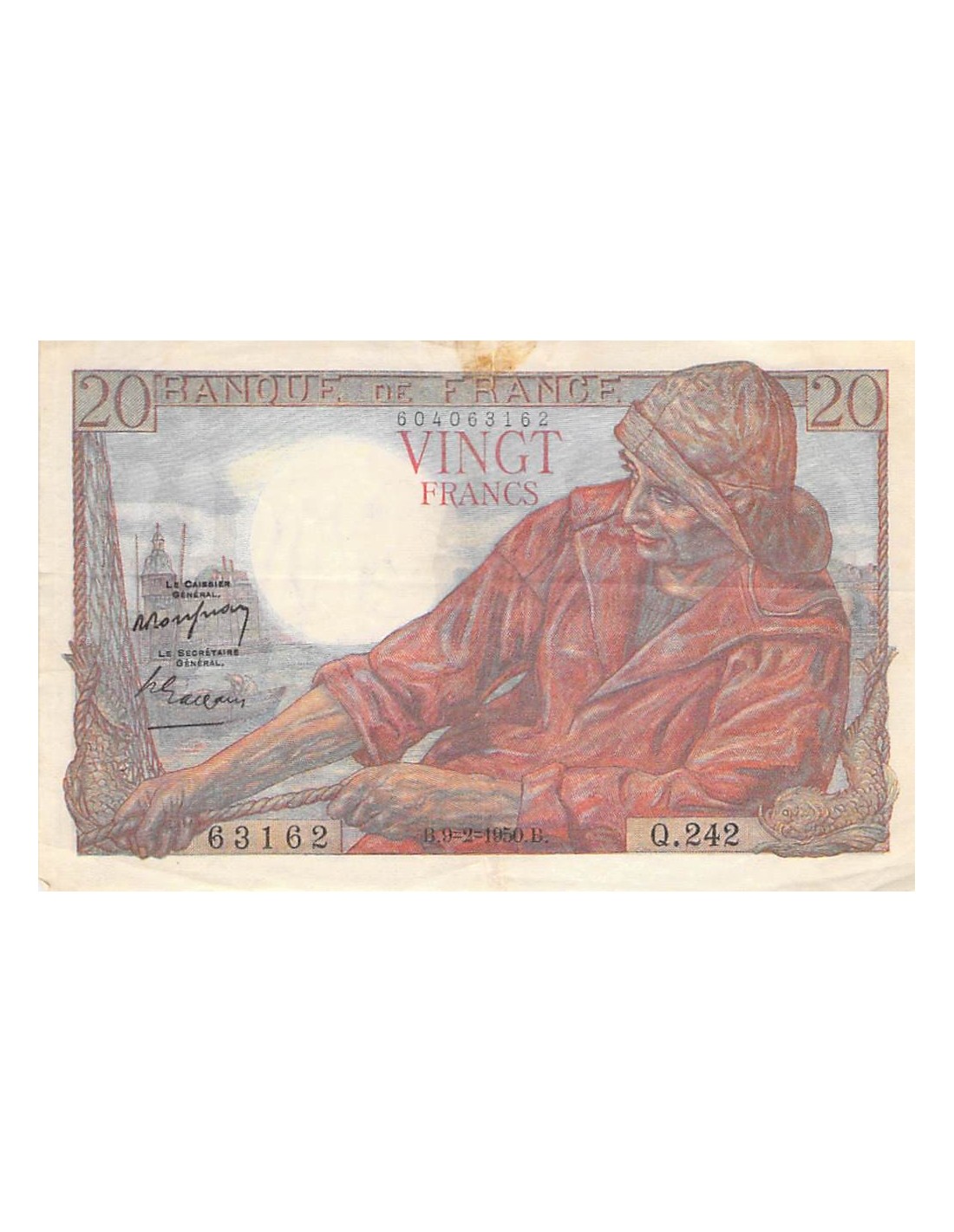 FRANCE - 20 FRANCS PÊCHEUR 09/02/1950 - SÉRIE Q.242 - TB+