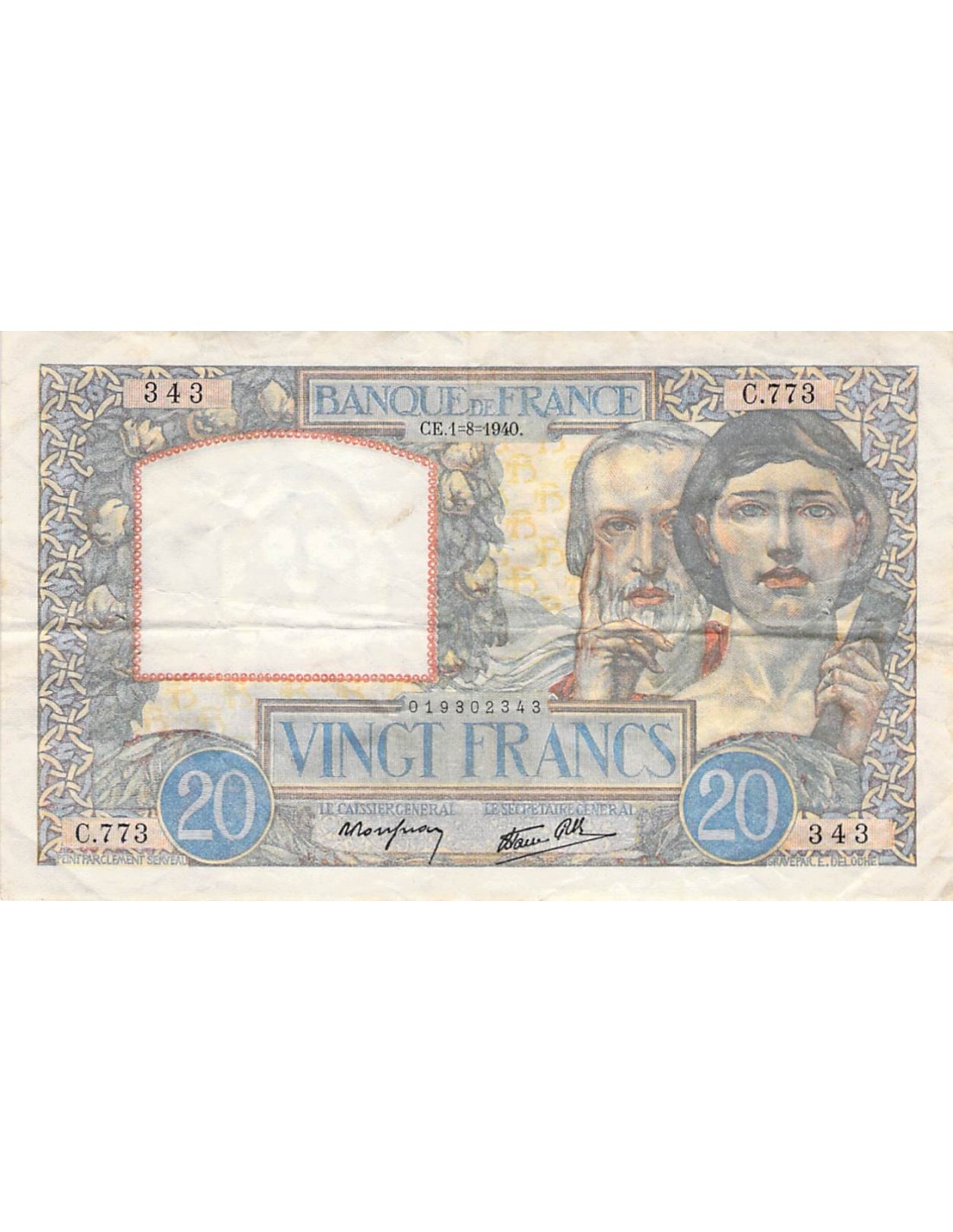 FRANCE - 20 FRANCS TRAVAIL ET SCIENCE 01/08/1940 - TB+