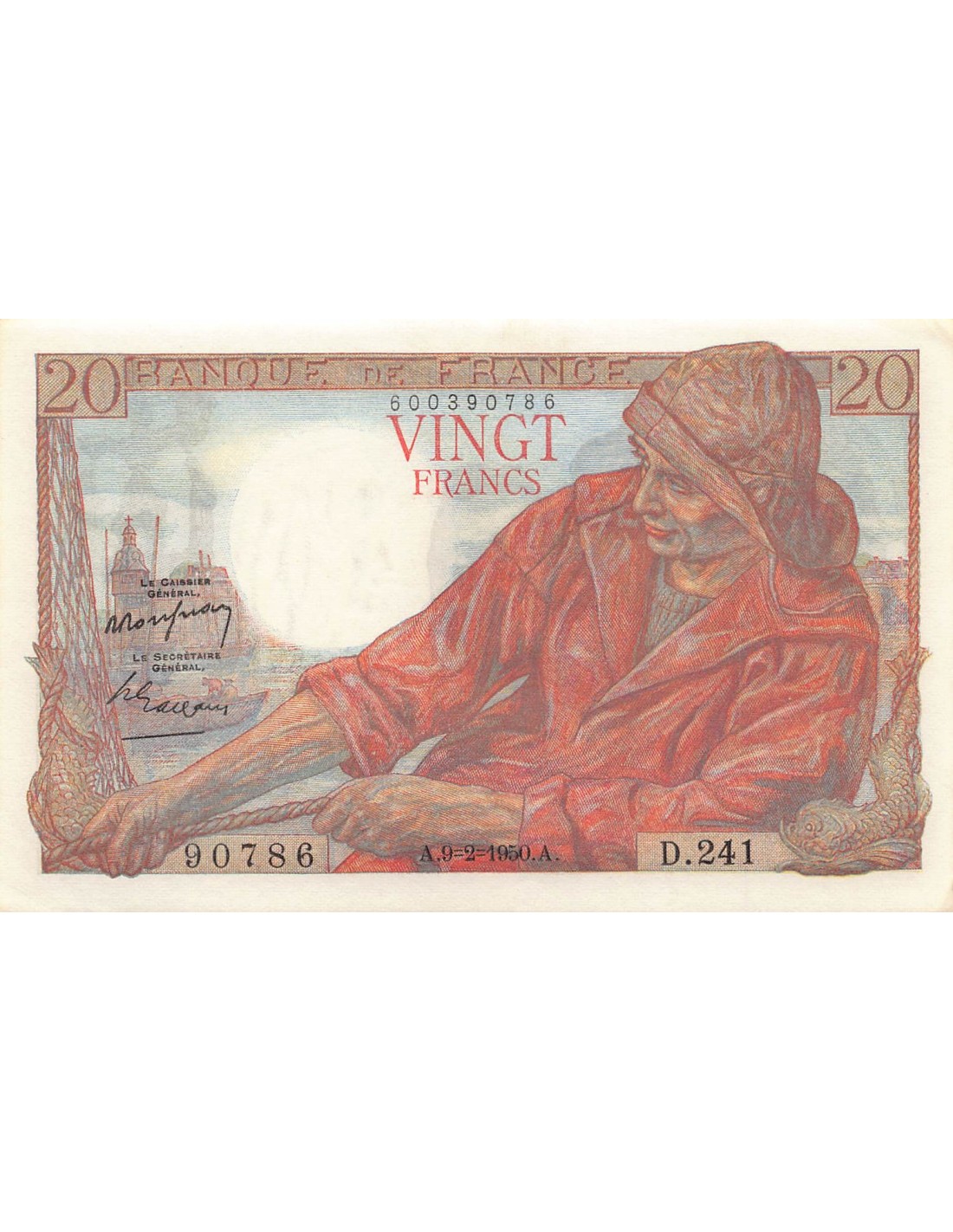 FRANCE, PÊCHEUR - 20 FRANCS 09/02/1950 - SÉRIE D.241 - SPL