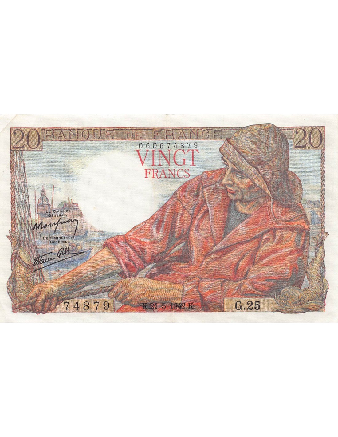 FRANCE, PÊCHEUR - 20 FRANCS 21/05/1942 - SÉRIE G.25 - TTB+
