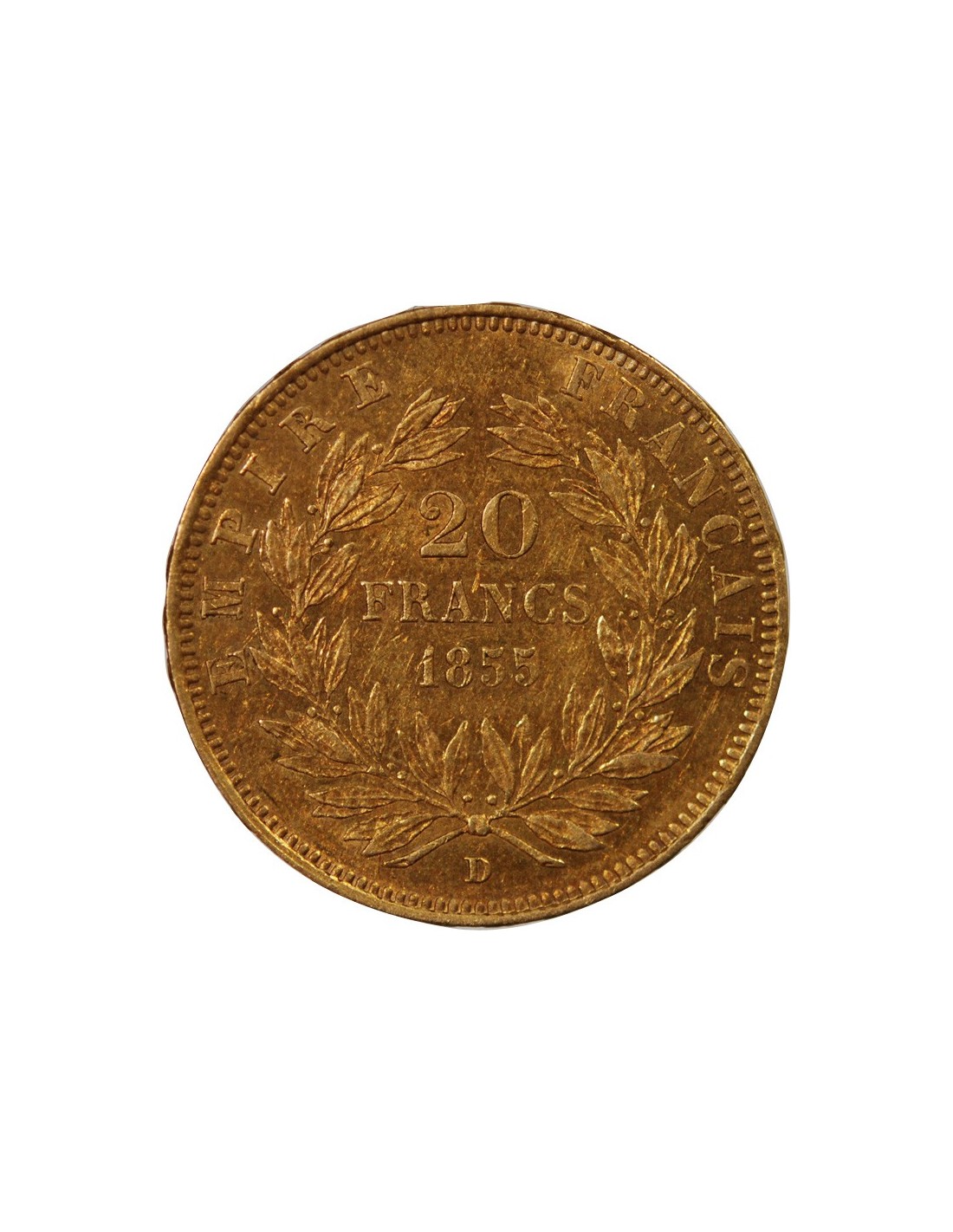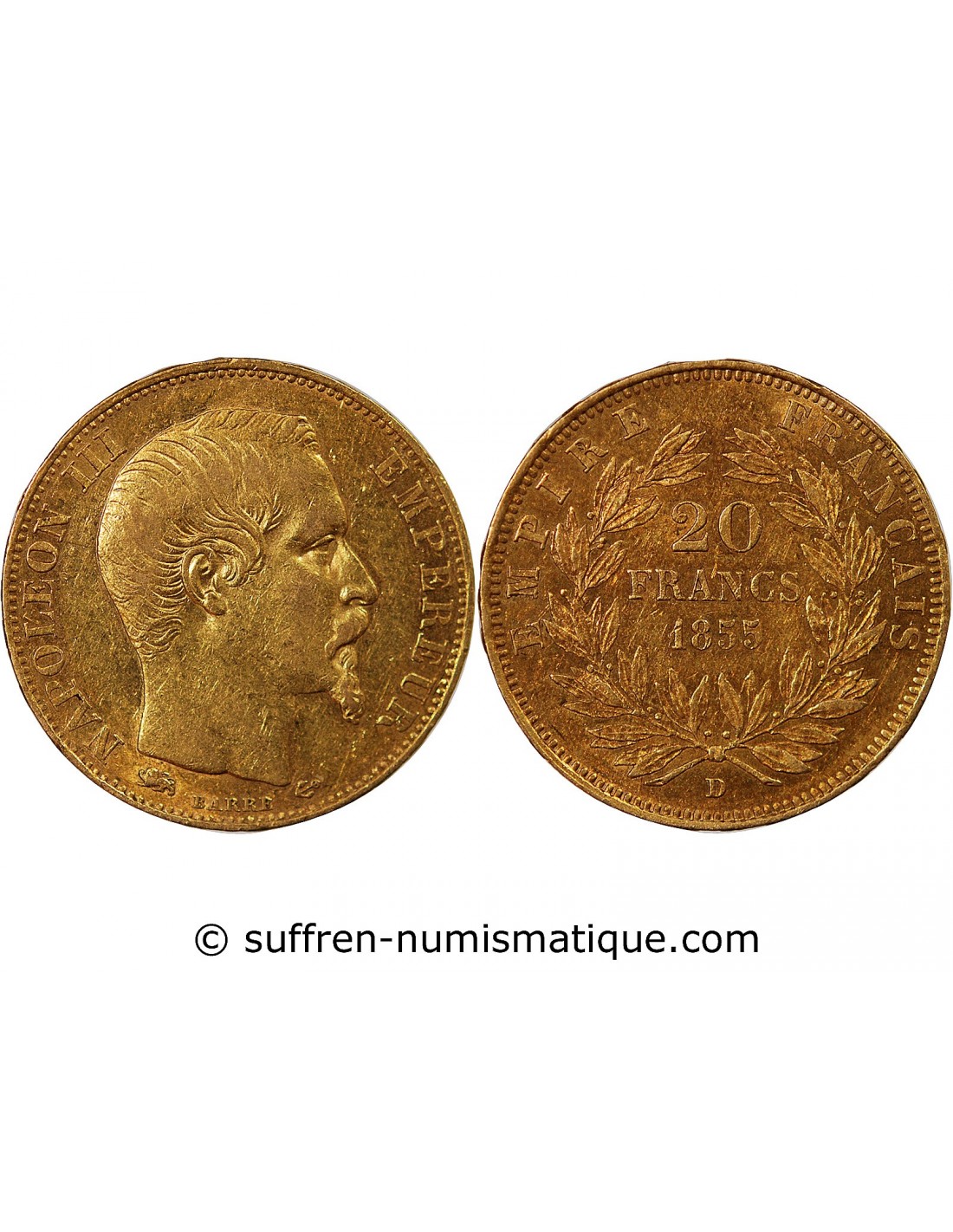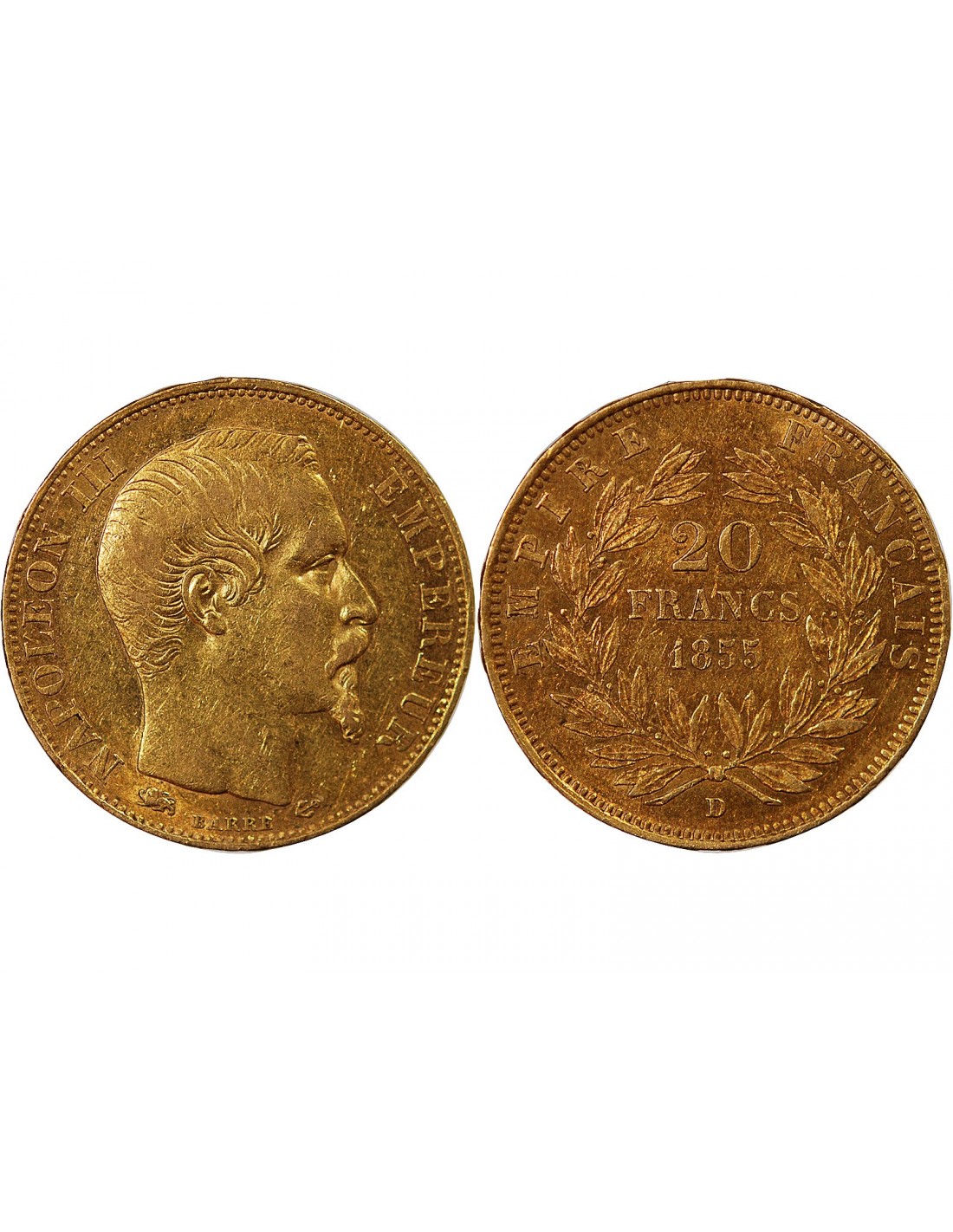 NAPOLEON III - 20 FRANCS OR 1855 D LYON Grand D"