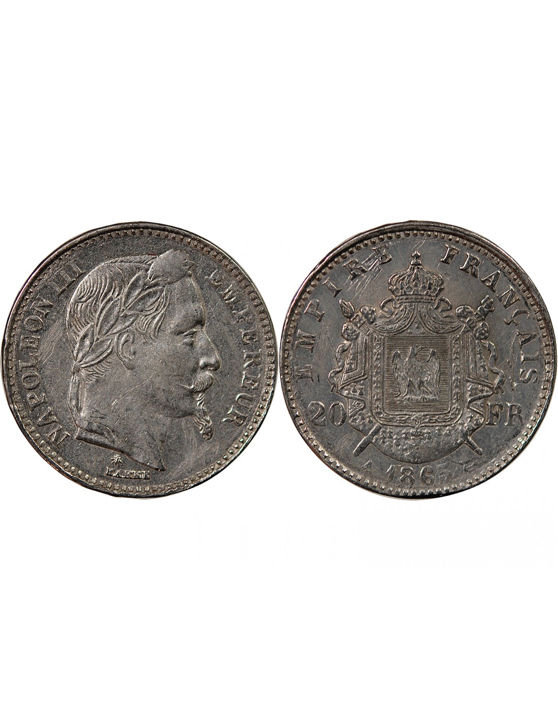 NAPOLEON III - 20 FRANCS PLATINE 1865 A PARIS - FAUX D'EPOQUE